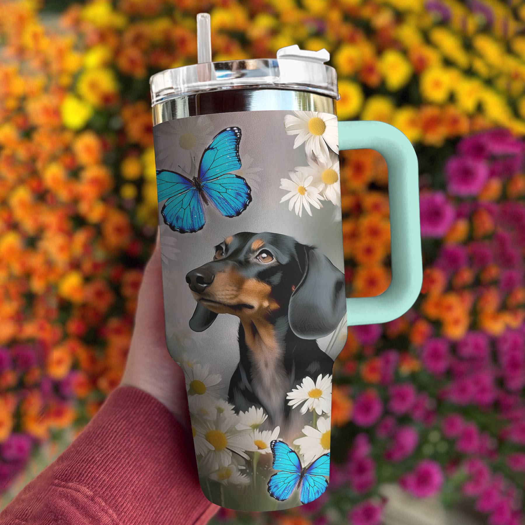 Shineful Tumbler Beautiful Dachshund With Daisy