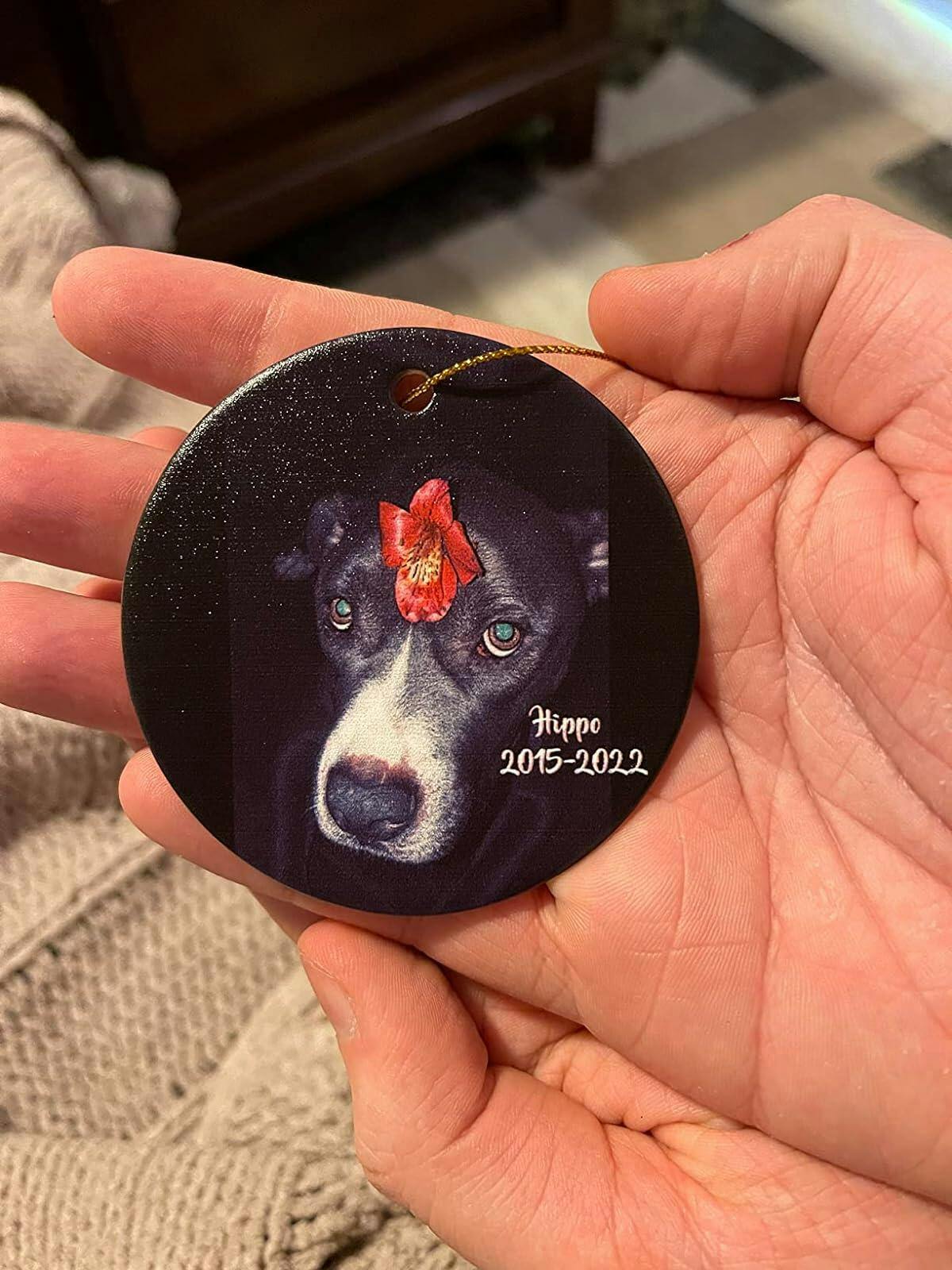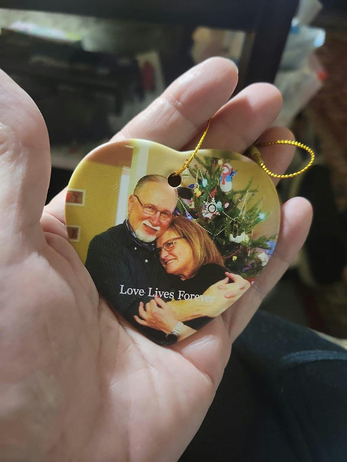 This was purchased as a memorial ornament for my husband who passed away in May of 2022. I could not be more pleased with it. It is very well made and has a gold string with a lock fastener to hang it with. The picture quality is excellent. I received it in less than two weeks. And the price was right.