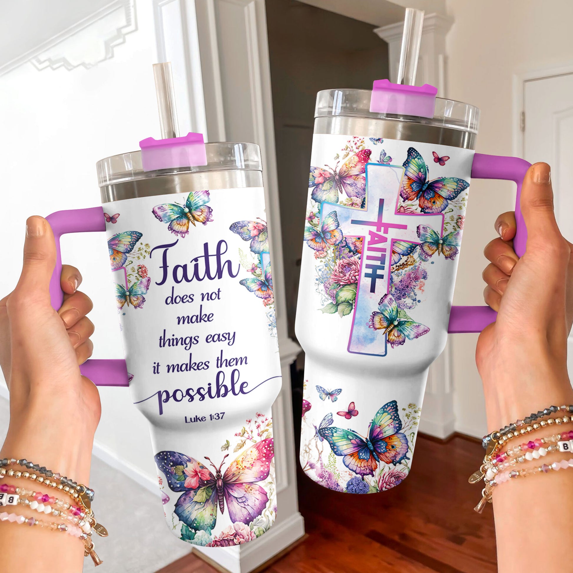 Our Shineful tumblers can keep beverages cold for up to 11 hours and hot for up to 7 hours, thanks to their double-wall insulation.