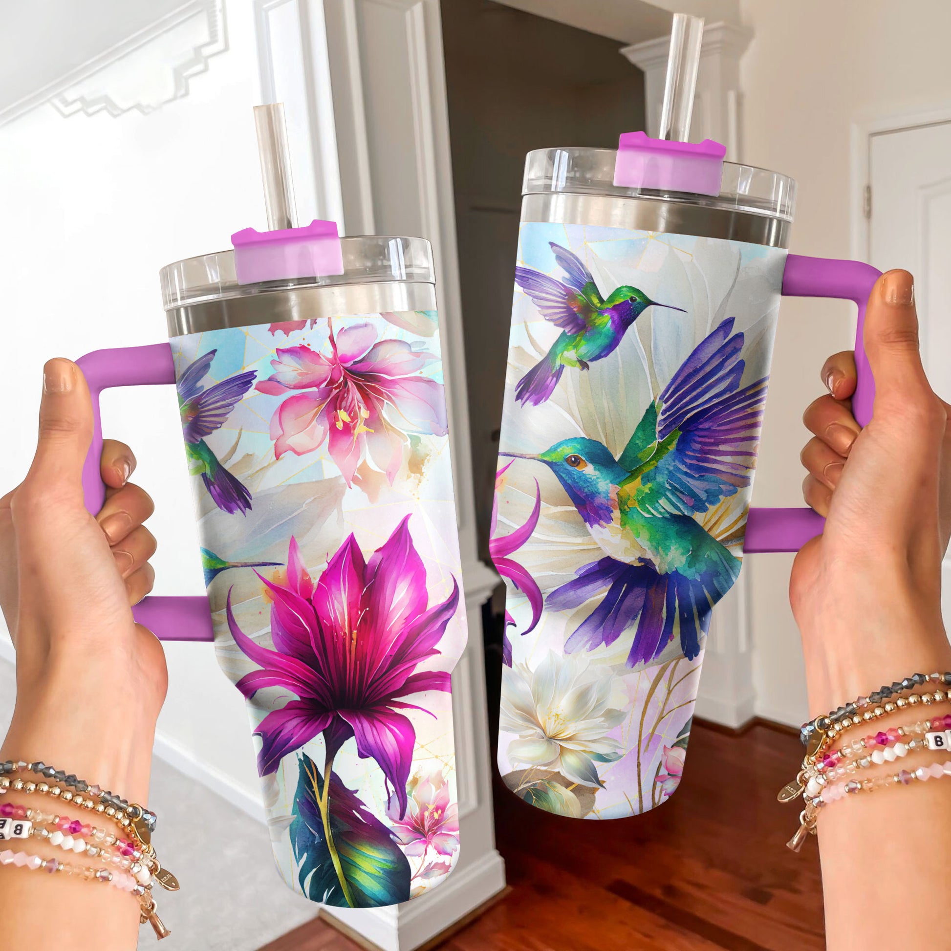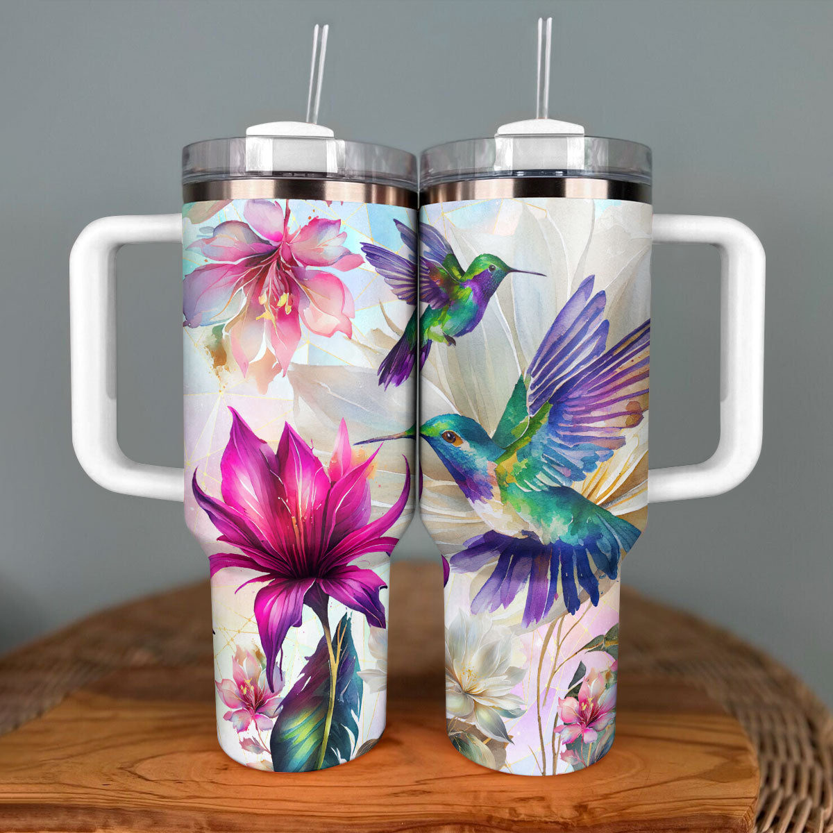 Hummingbird Shineful Tumbler Fluttering Blossoms