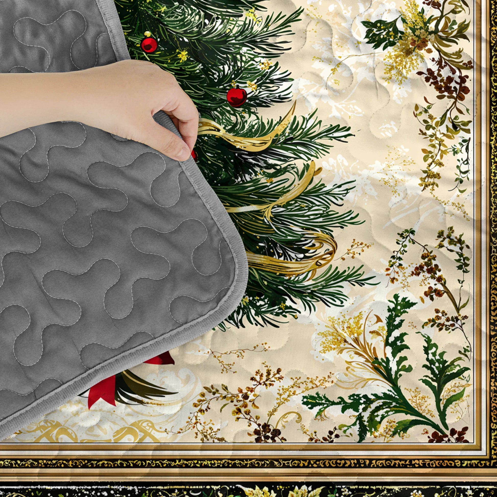 At the heart of the quilt stands the Christmas tree — a timeless symbol of hope, love, and togetherness — framed by classic European-inspired borders that add a touch of elegance and nostalgia. The golden and red tones reflect happiness and good fortune, while the soft cream background brings a sense of calm and harmony to any room.