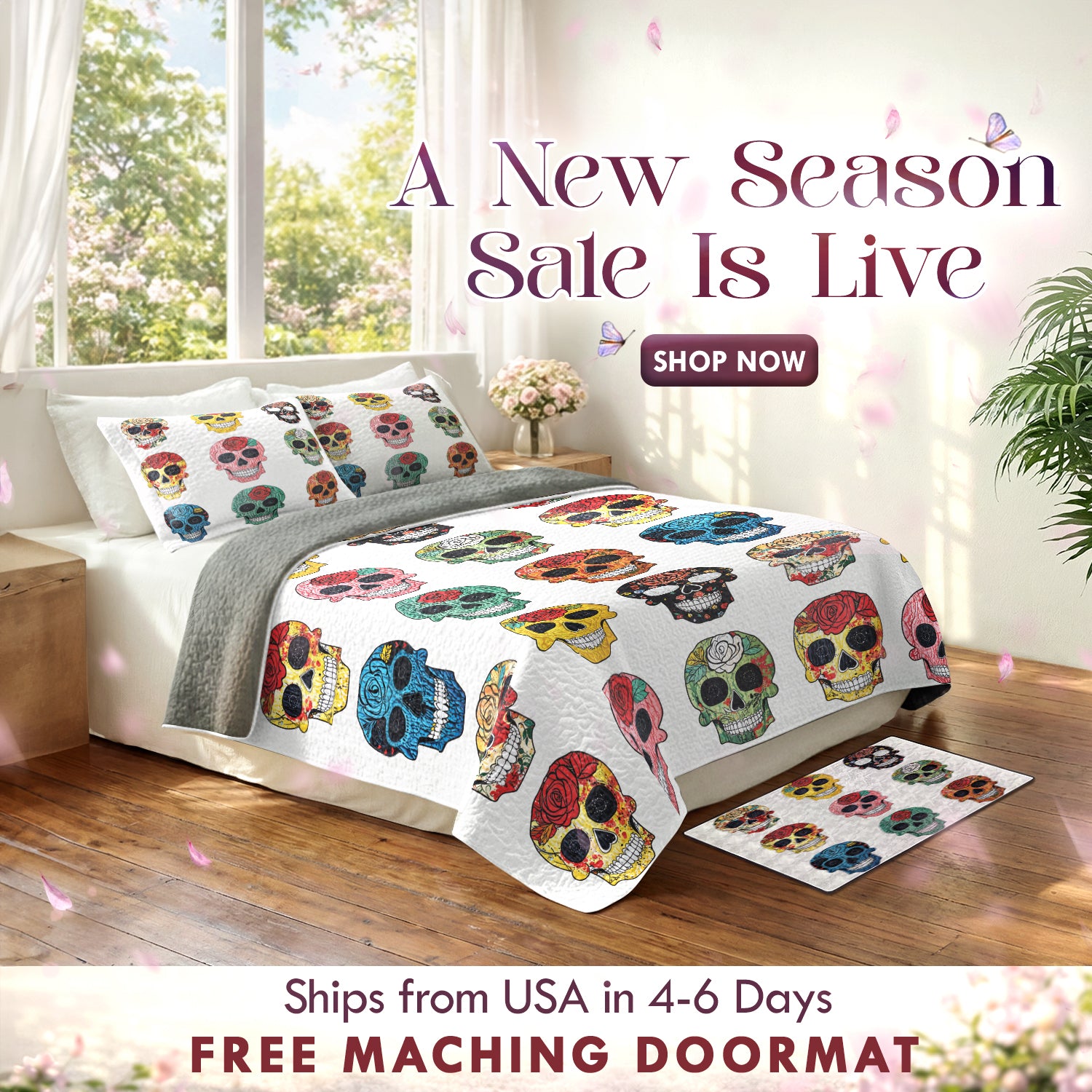 Shineful Quilt 3-Piece Set Colorful Sugar Skull Roses
