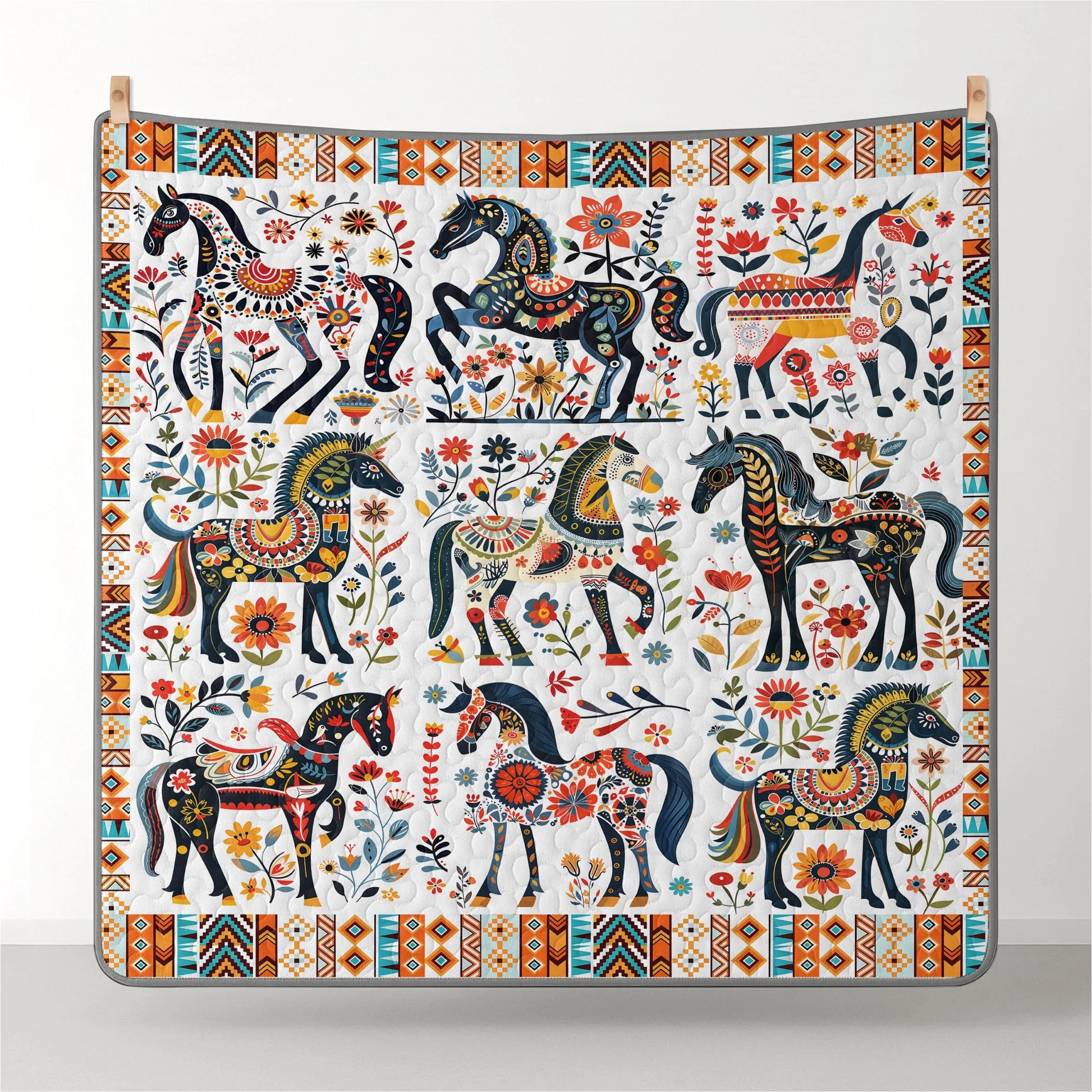 This design was inspired by the free-spirited beauty of horses — symbols of strength, grace, and untamed joy. I wanted to capture their energy through a vibrant tapestry of floral and folk-art patterns that celebrate nature’s harmony.