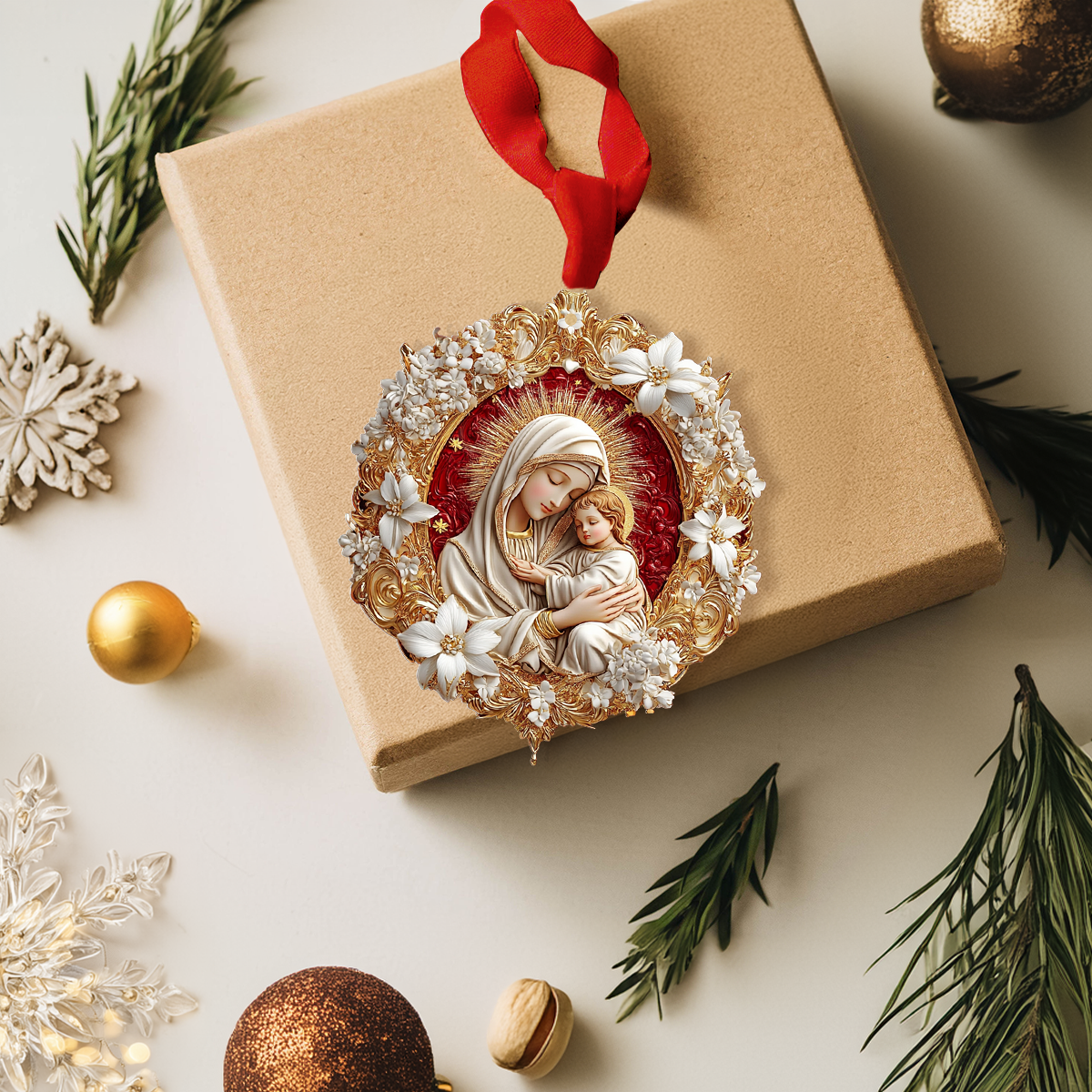 Versatile Display: Comes with an elegant satin ribbon or gold string, making it easy to hang on your Christmas tree, display on a wall hook, or showcase in your car.