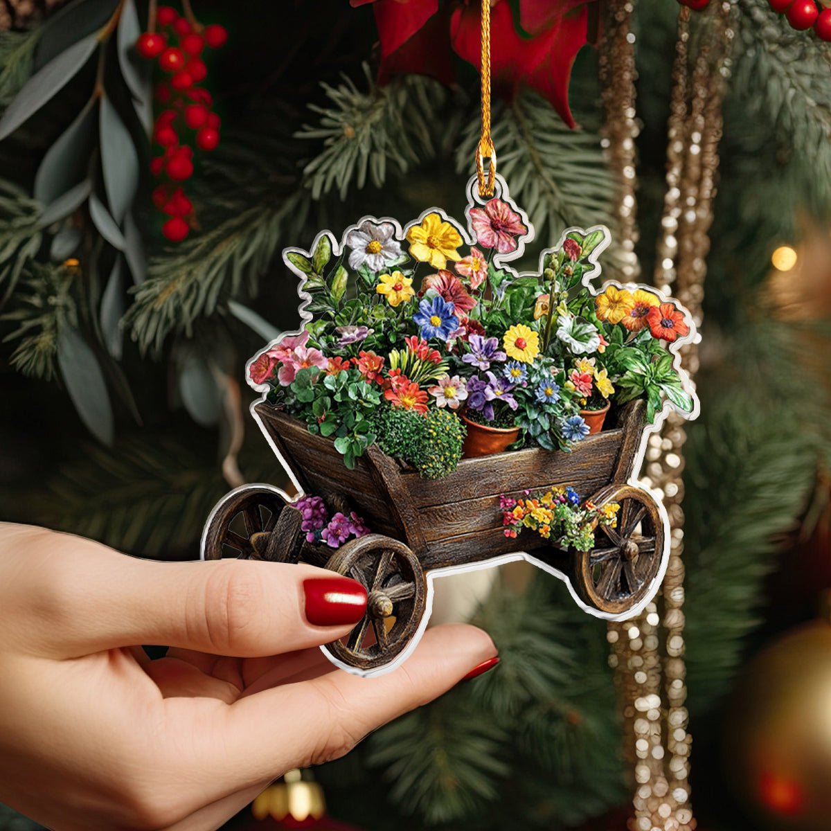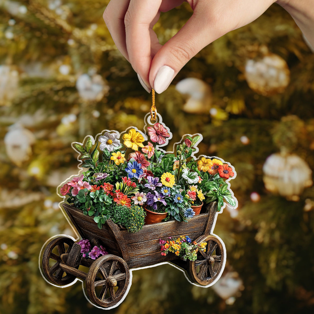 Shineful 2D Acrylic Ornament - Blooming Garden Cart