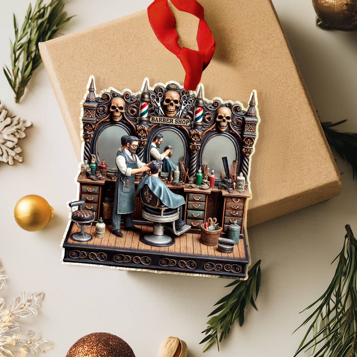 Shineful 2D Acrylic Ornament Classical Skull Hair Salon