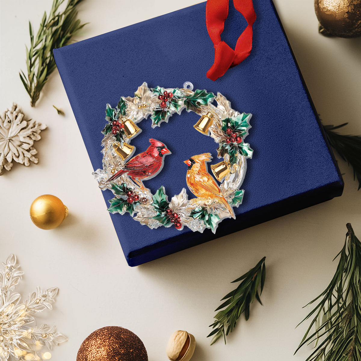 Shineful 2D Acrylic Ornament Crystal Cardinal Couple Wreath