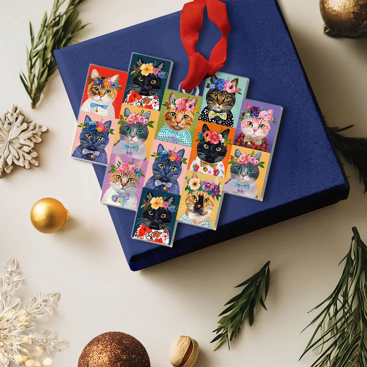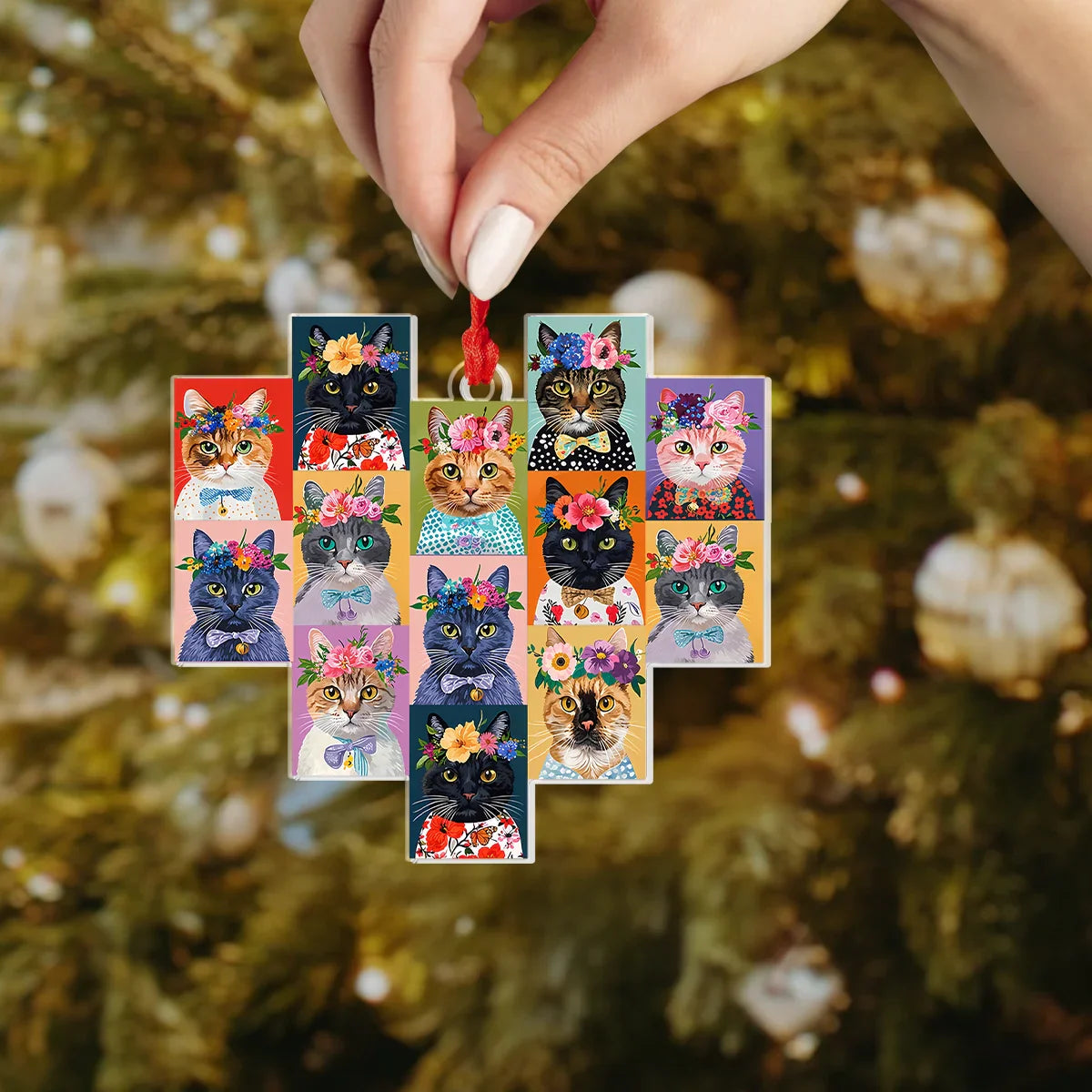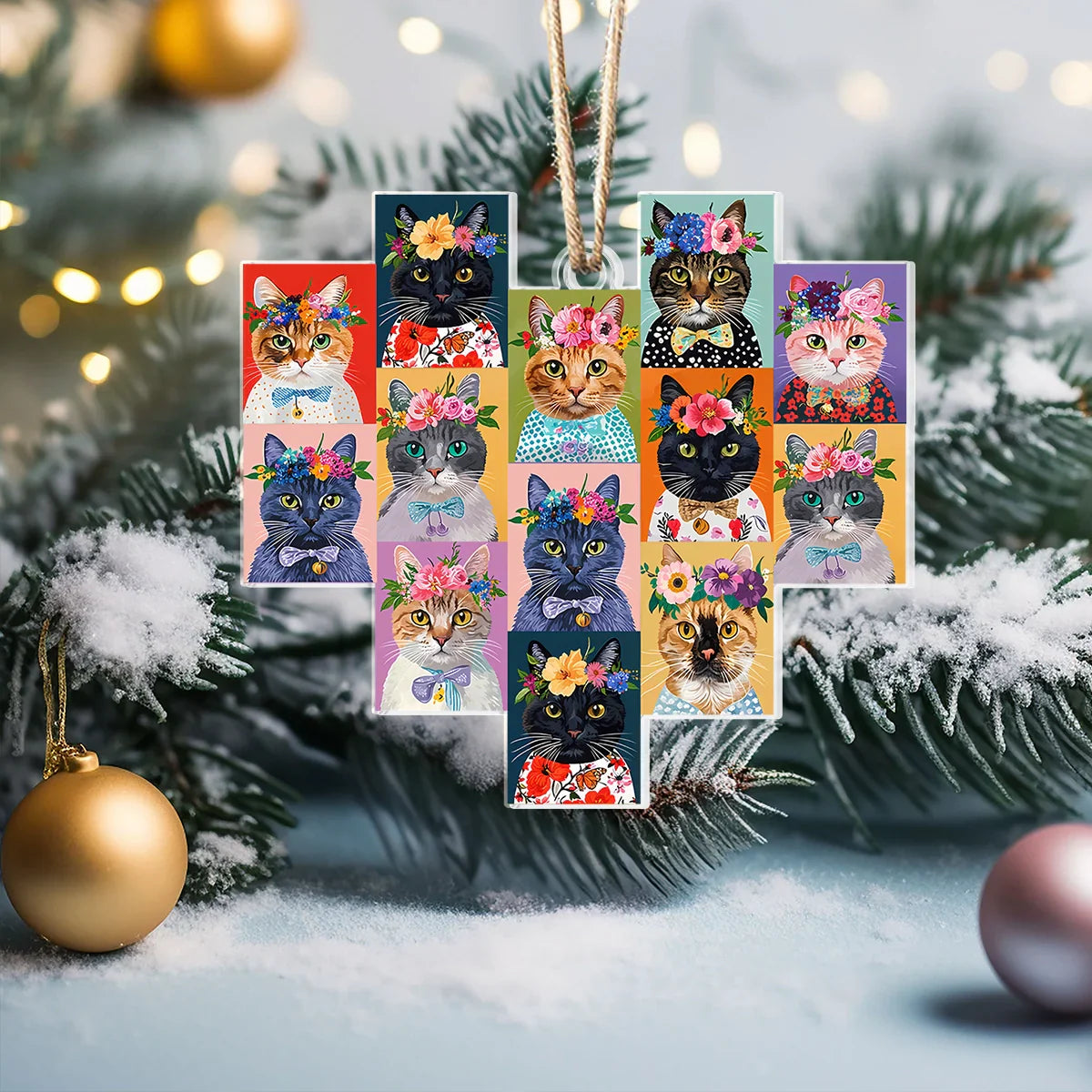 Shineful Acrylic Ornament Feline Floral Delight