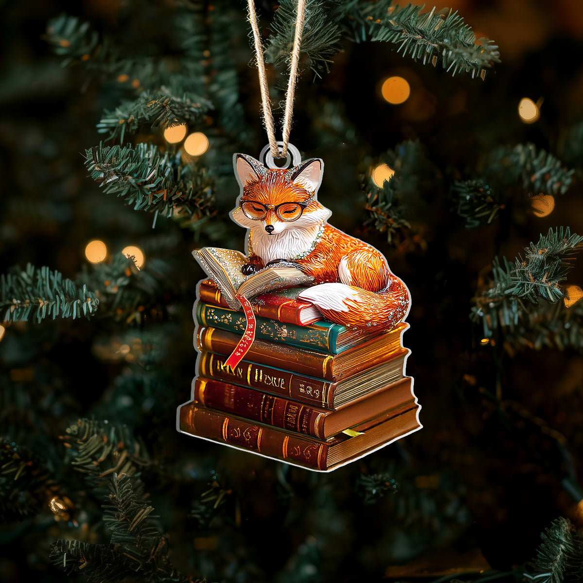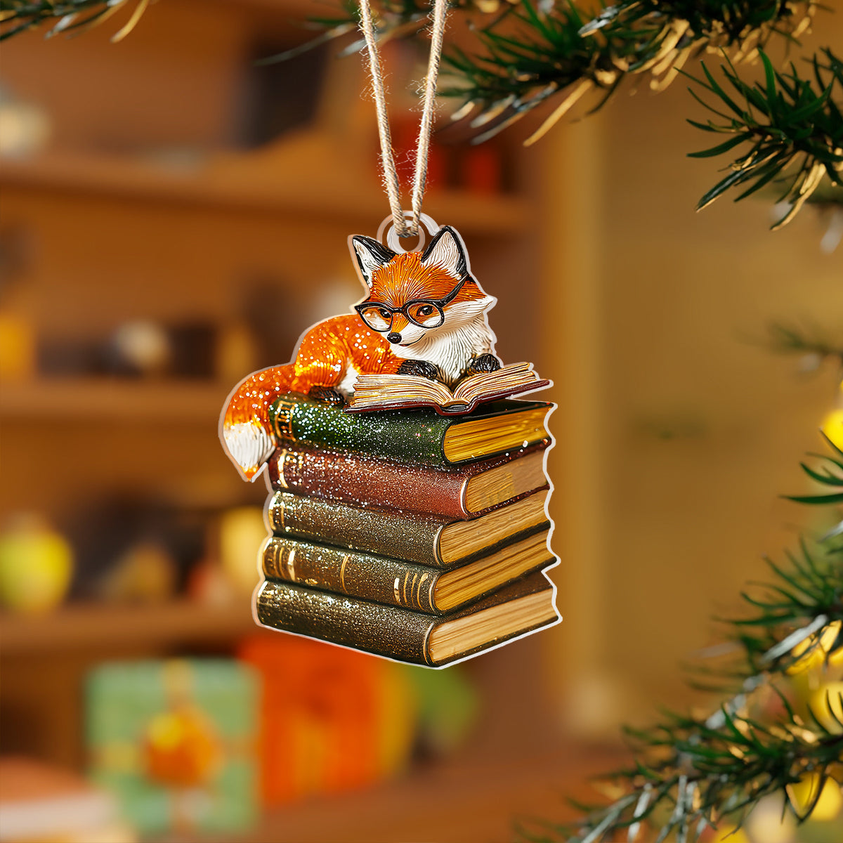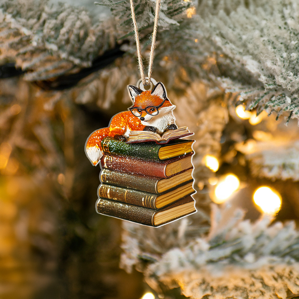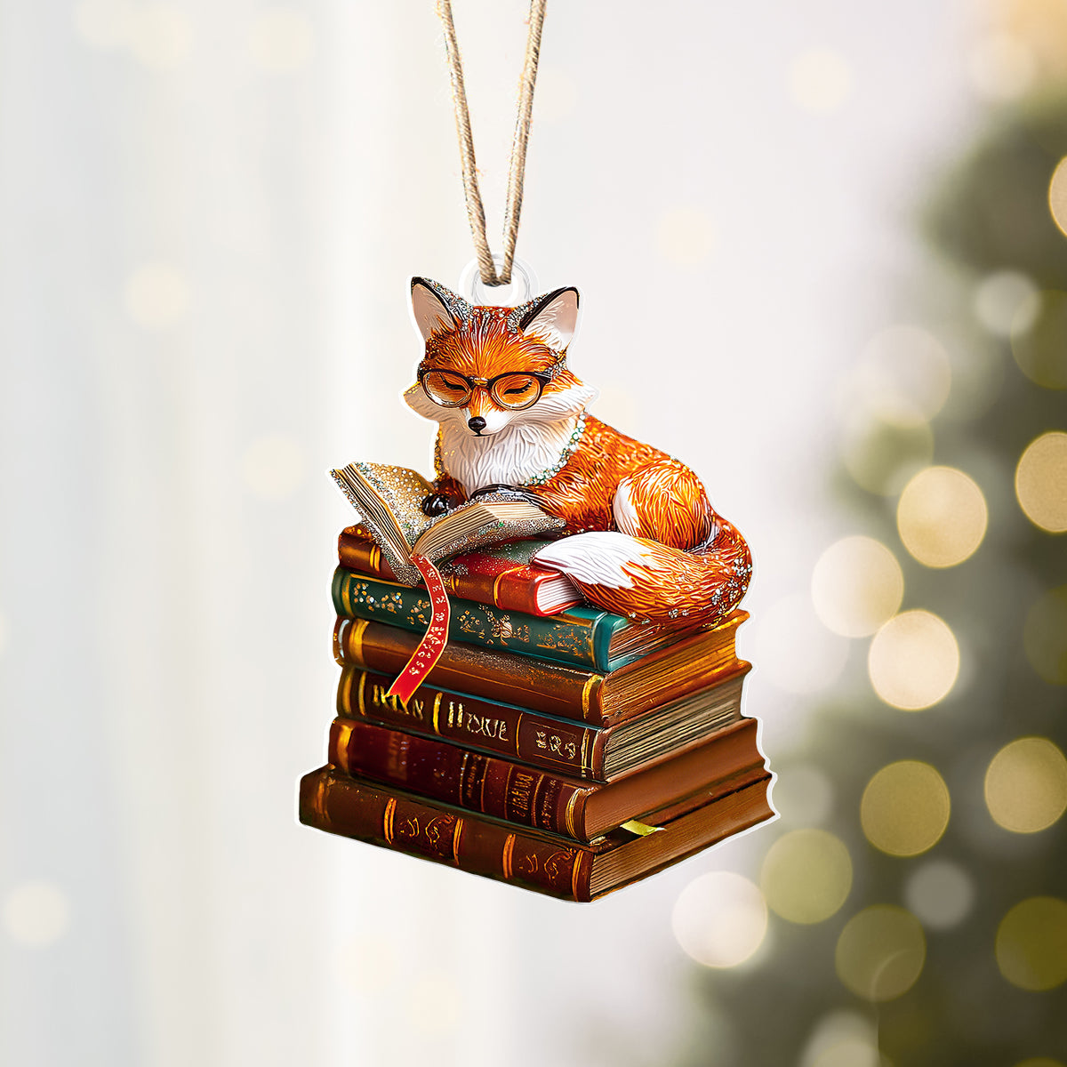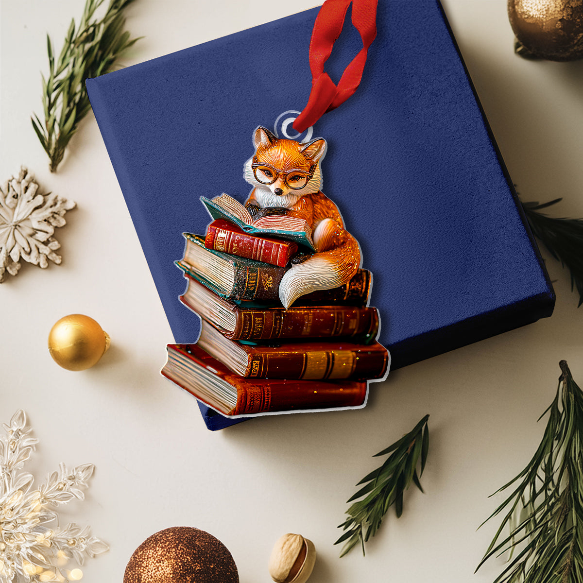 Shineful 2D Acrylic Ornament Fox With Stack of Books