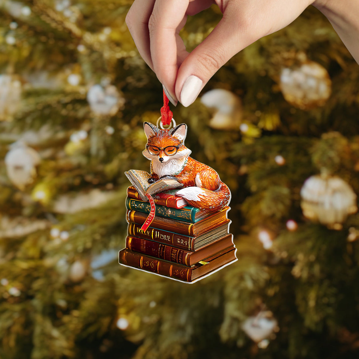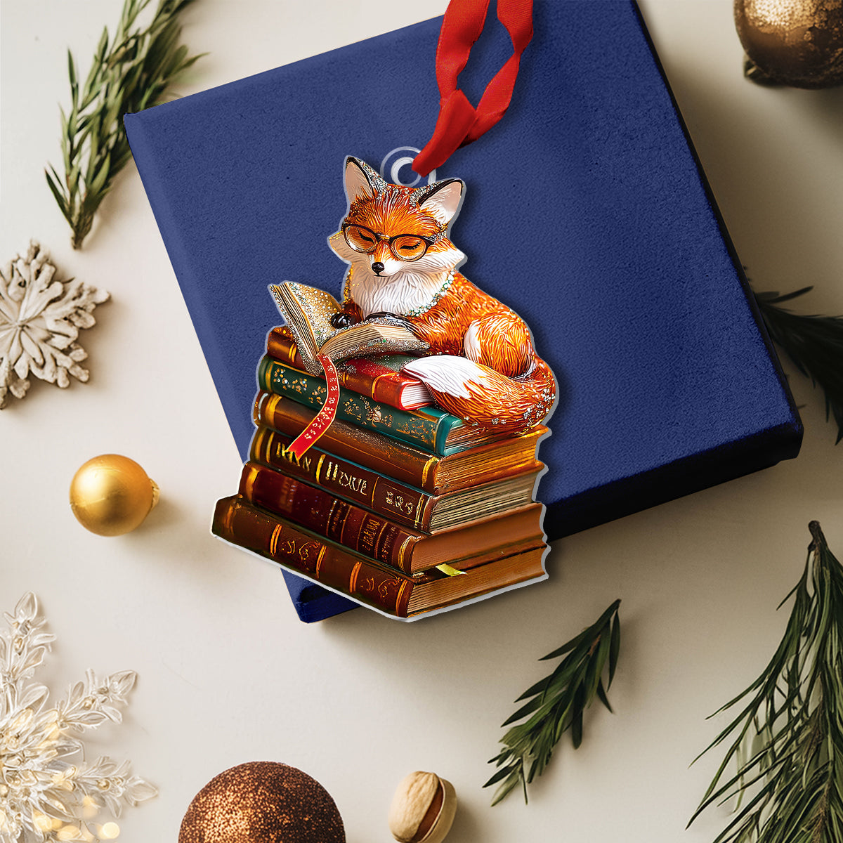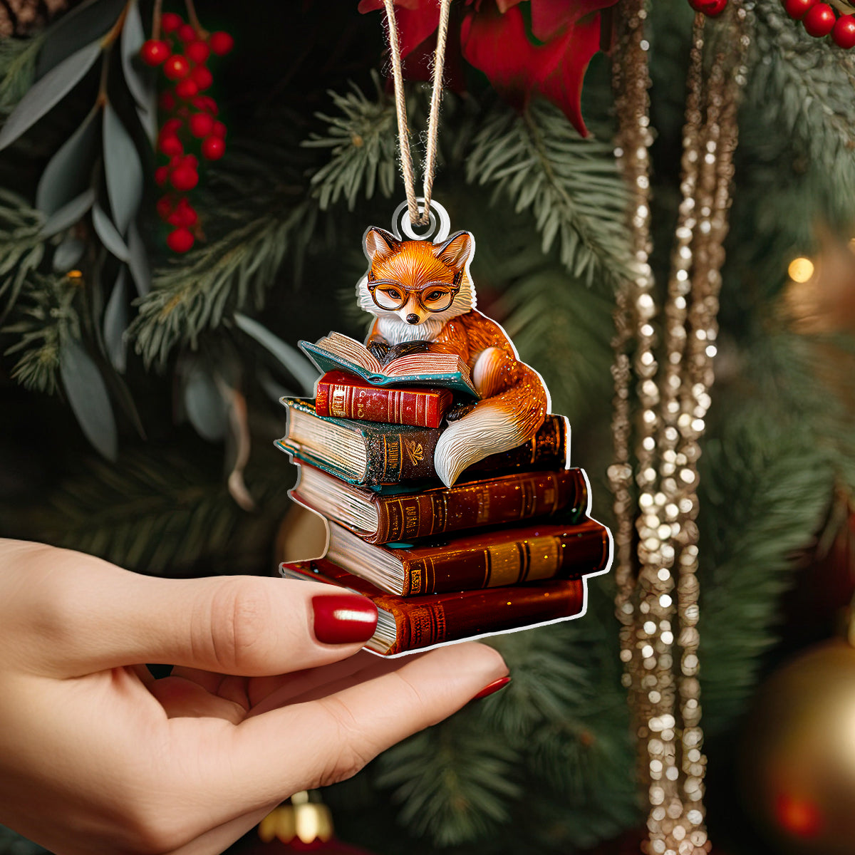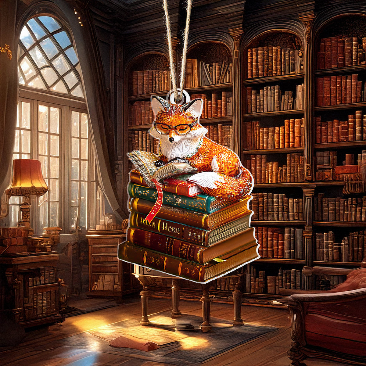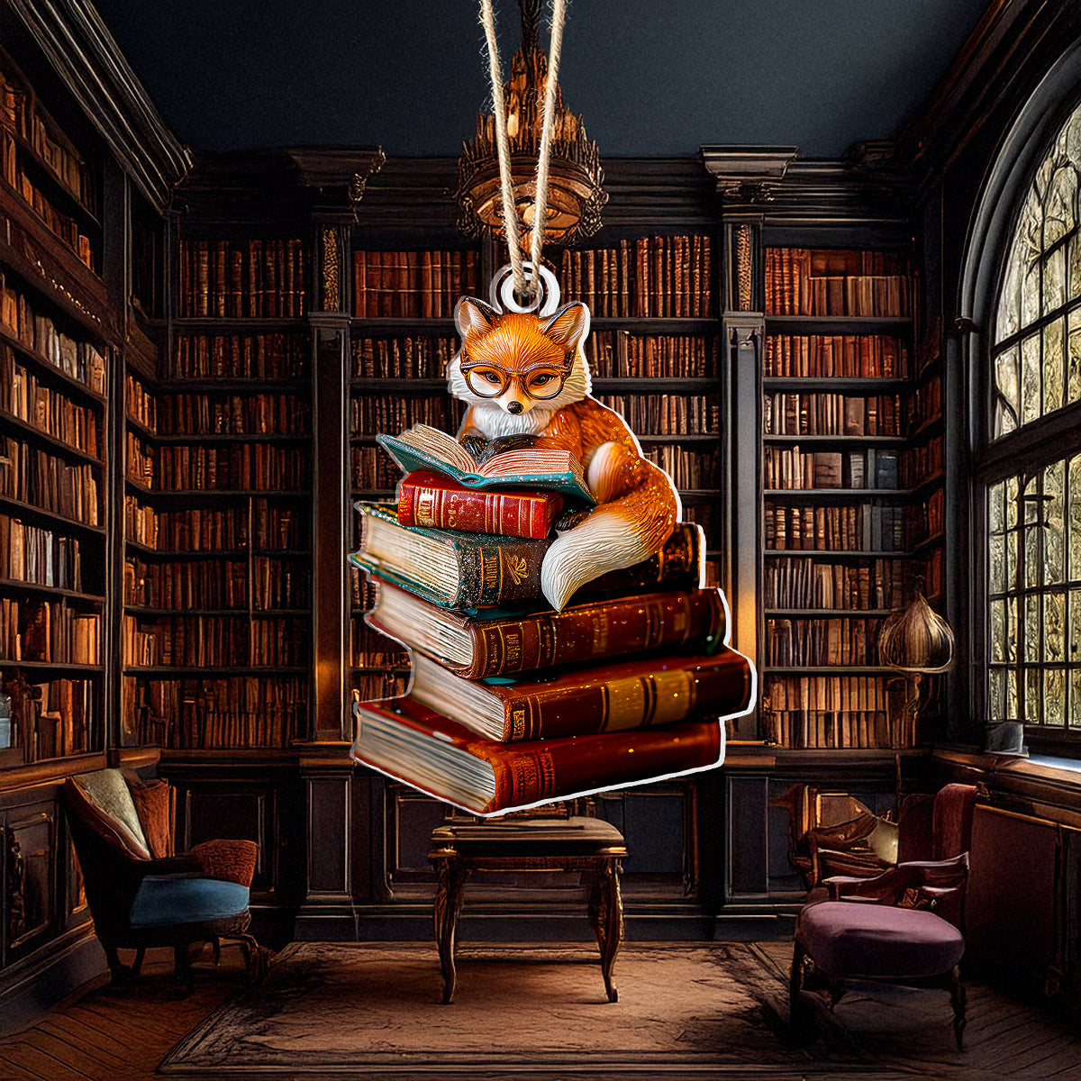 Shineful 2D Acrylic Ornament Fox With Stack of Books