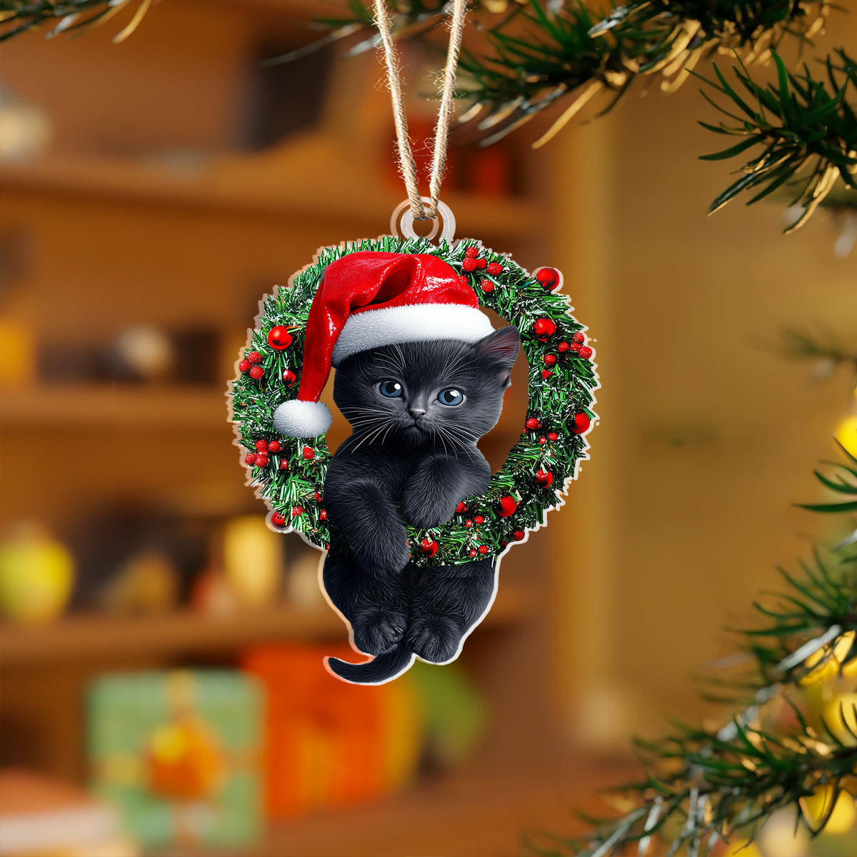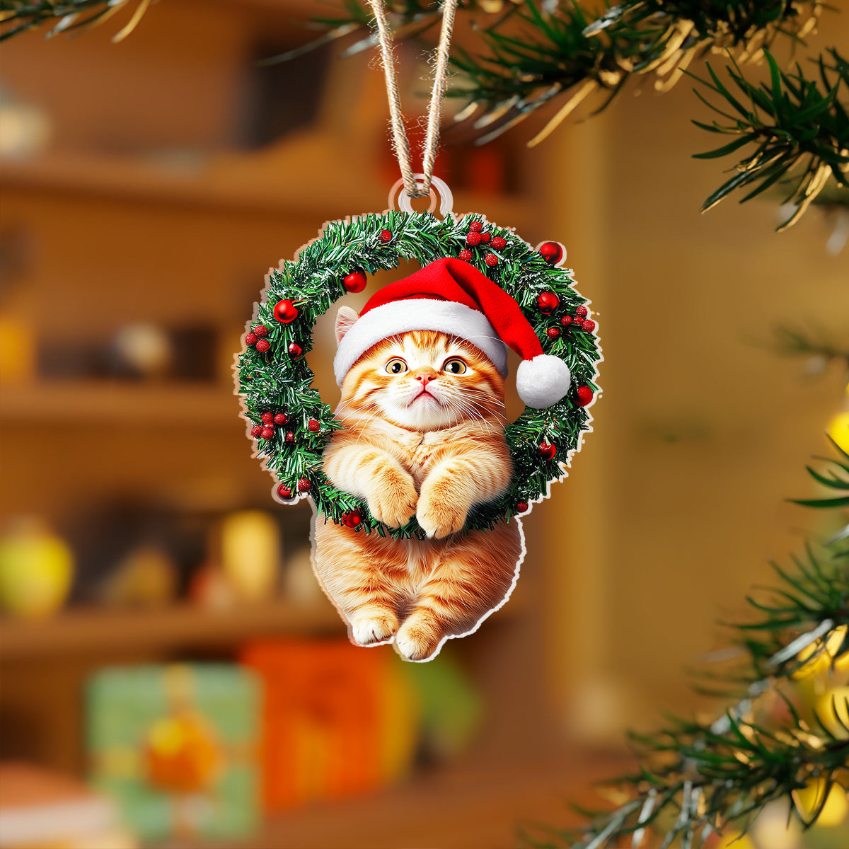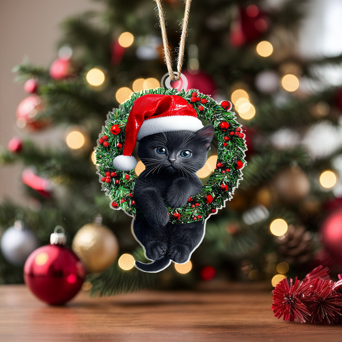 Shineful 2D Acrylic Ornament Naughty Cat With Holly Berry Wreath