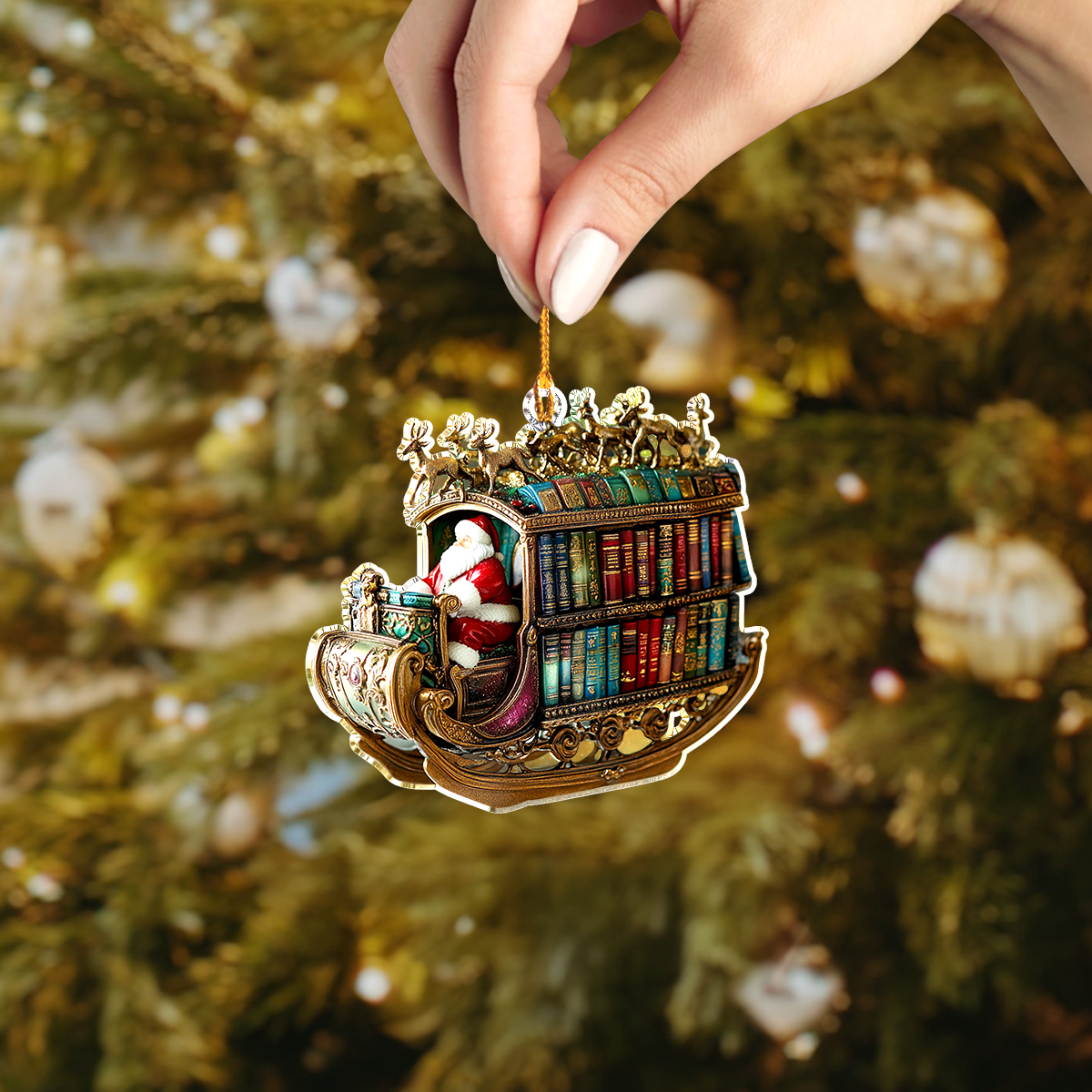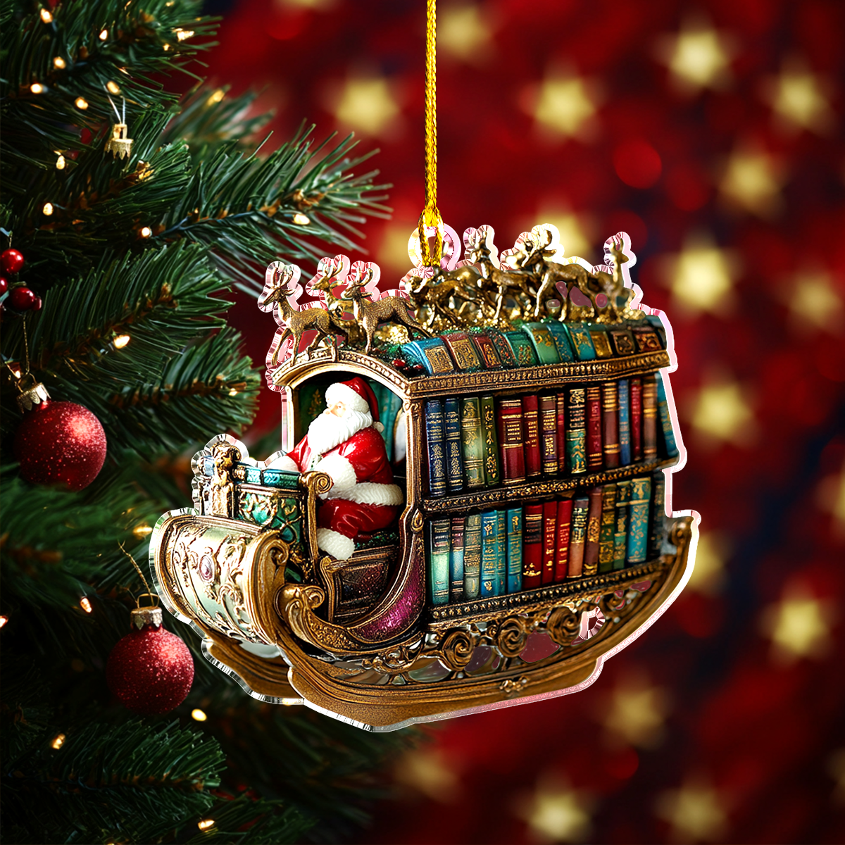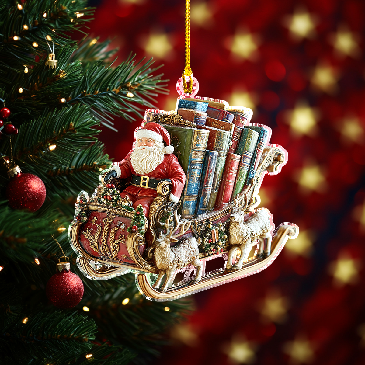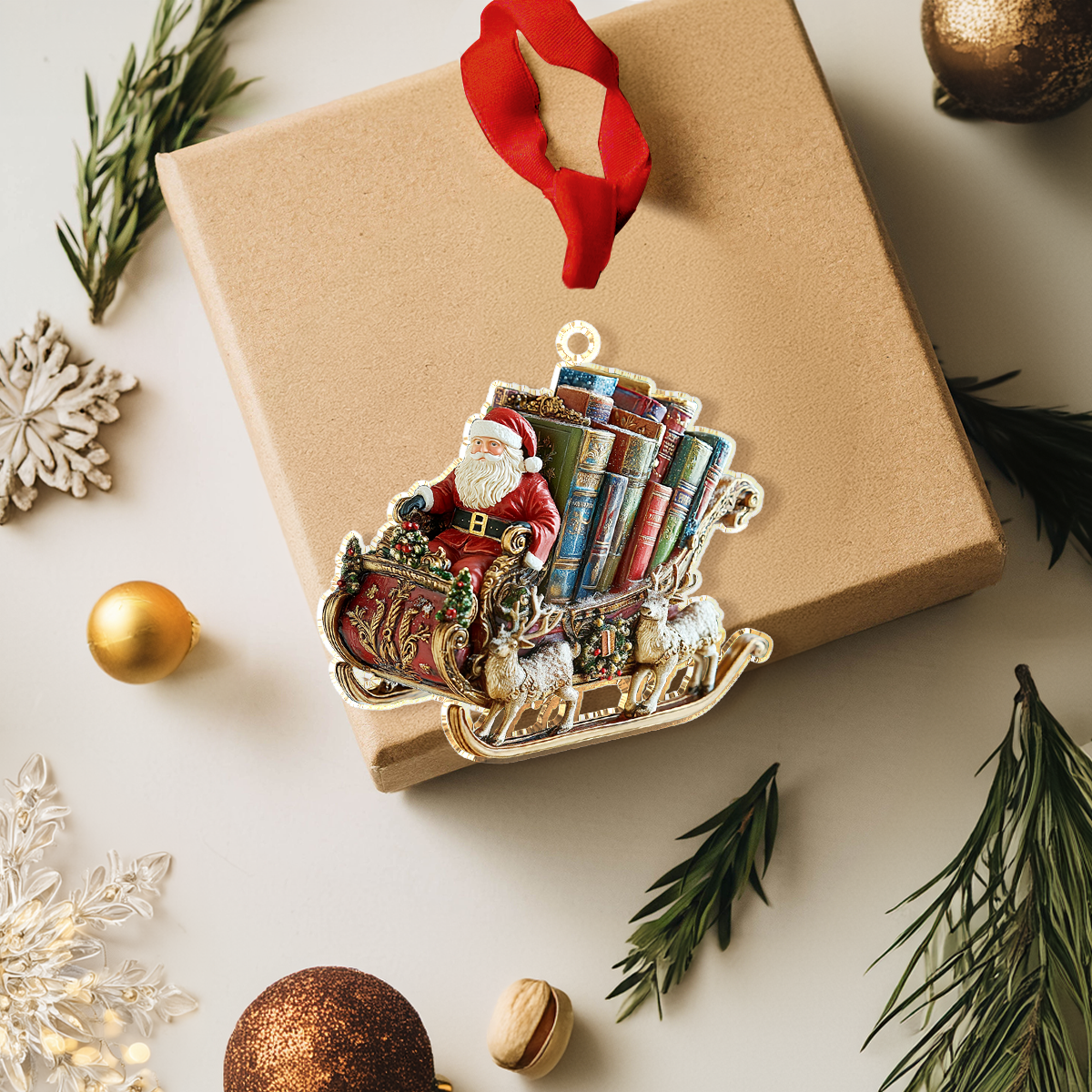 Shineful 2D Acrylic Ornament Santa Book Sleigh