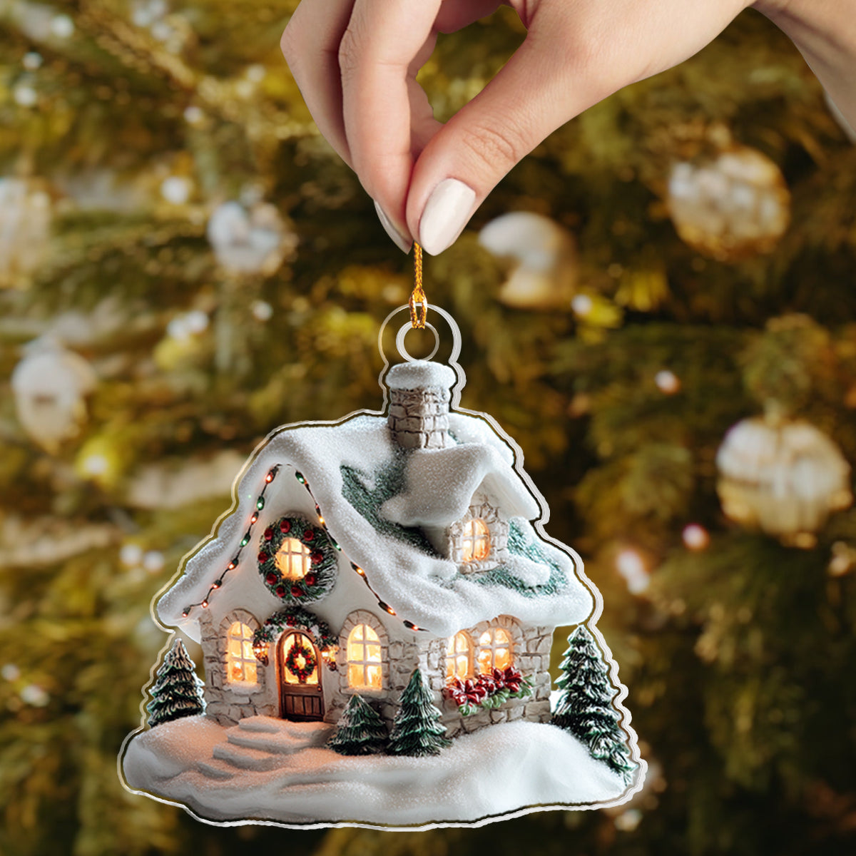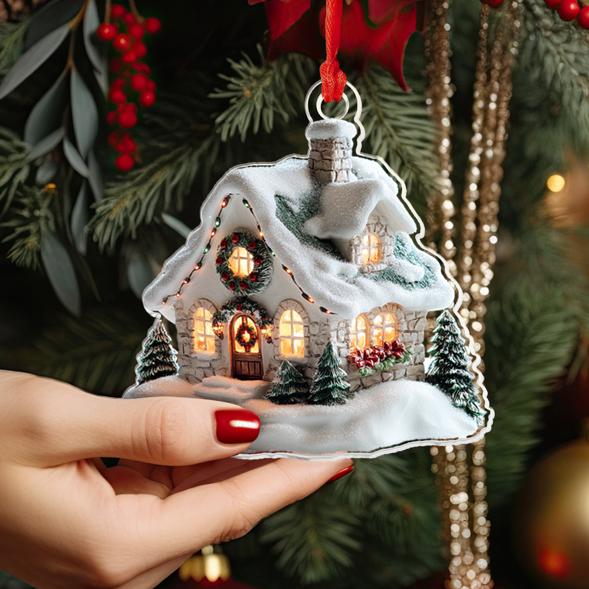 Shineful 2D Acrylic Ornament - Snowy Cottage