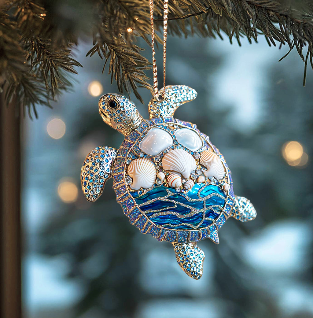 Shineful 2D Acrylic Ornament Sparkling Seashell Sea Turtle