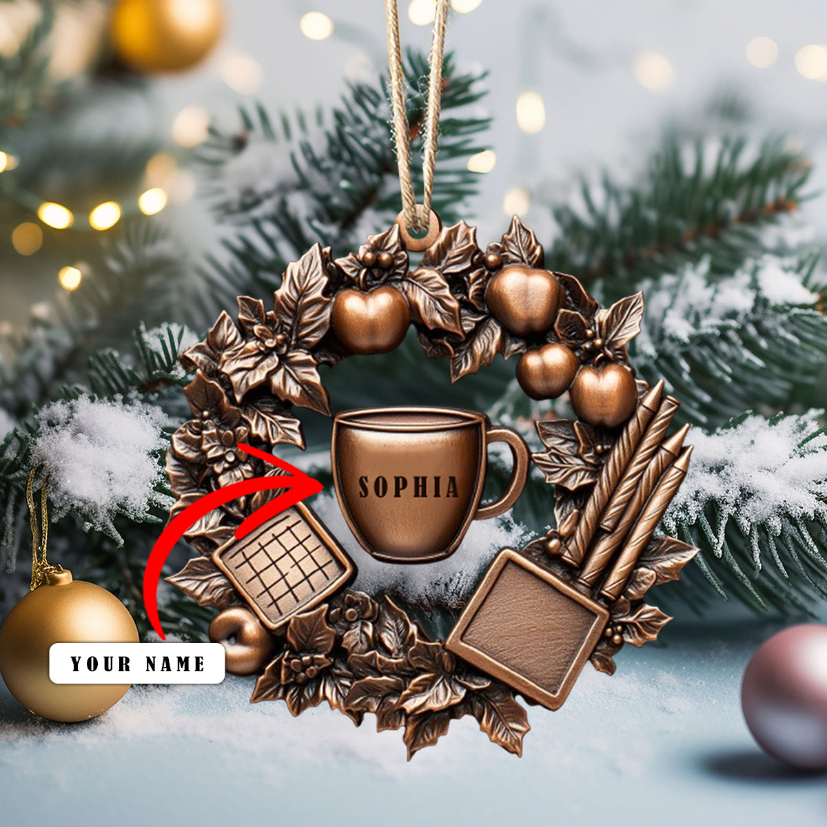 Shineful Personalized 2D Acrylic Ornament - Teacher’s Wreath