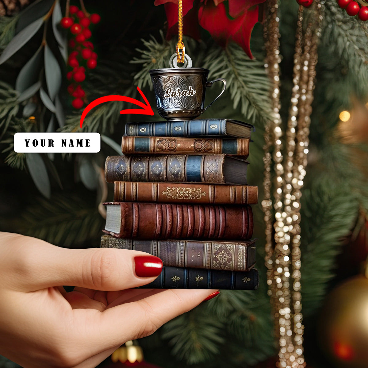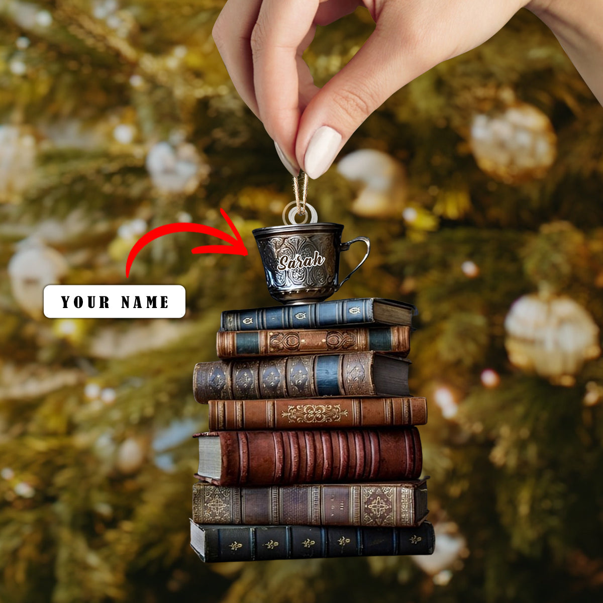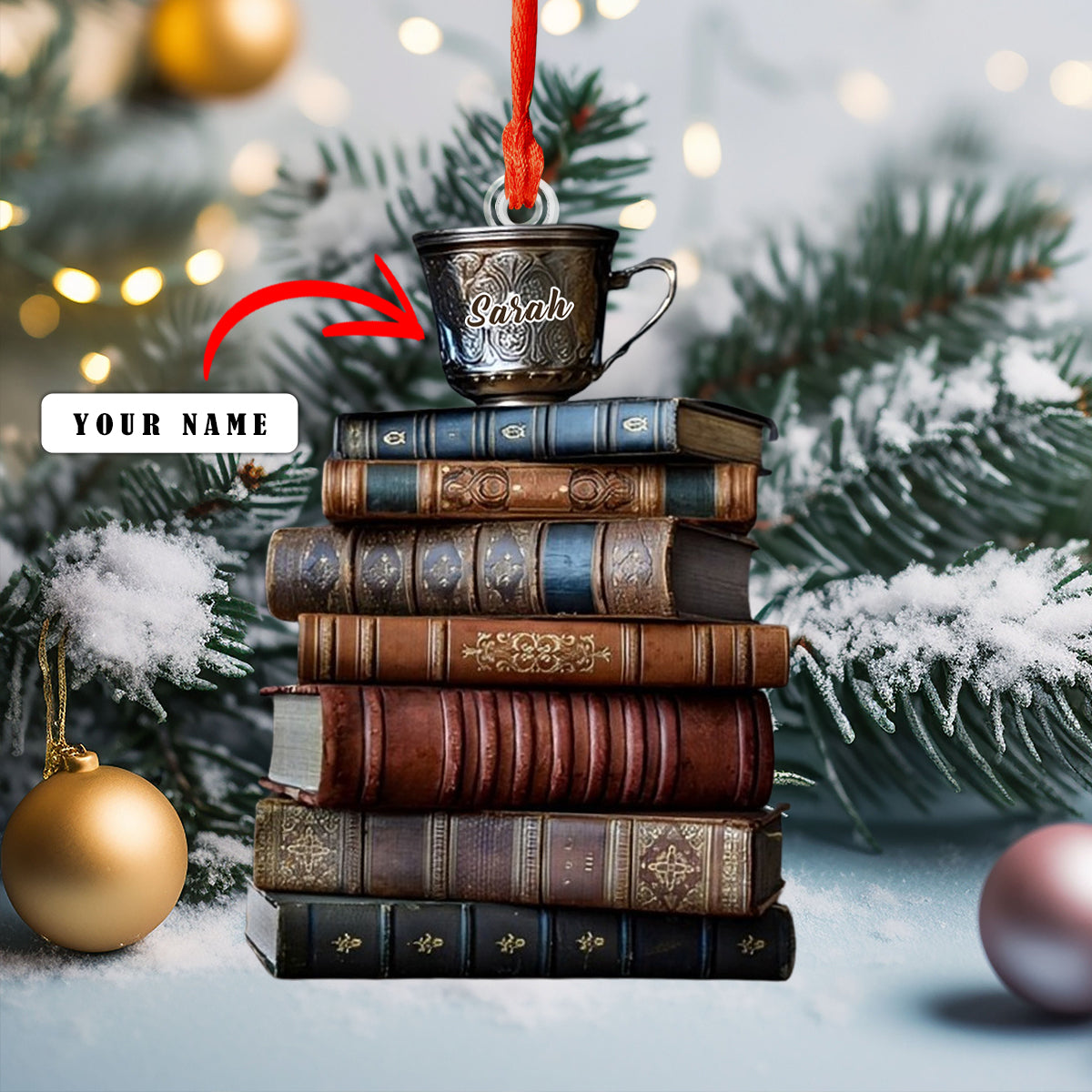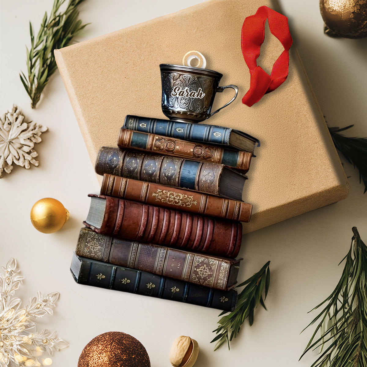 Shineful Personalized 2D Acrylic Ornament - Vintage Books & Coffee