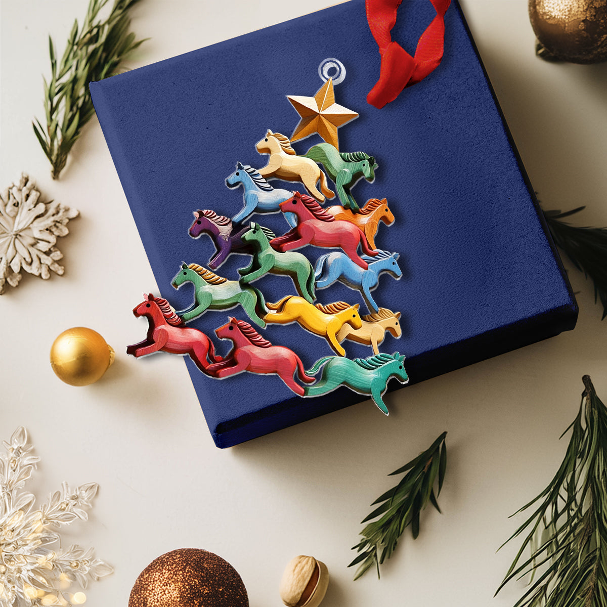 Shineful 2D Acrylic Ornament Wooden Horse Christmas Tree