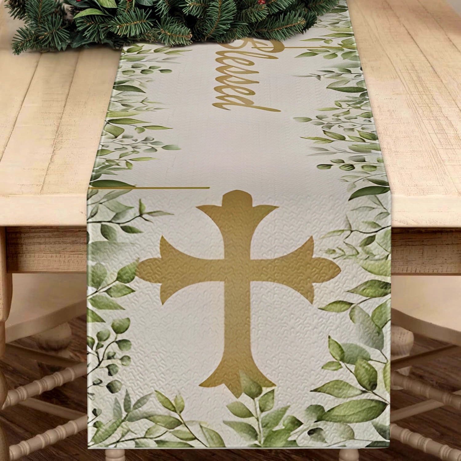 Shineful 2D Flat Print Quilted Table Runner Faithful Blessings Cross