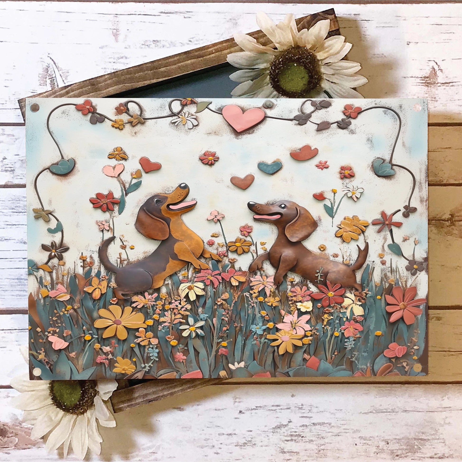 Shineful 2D Metal Sign Dachshund Love in Bloom
