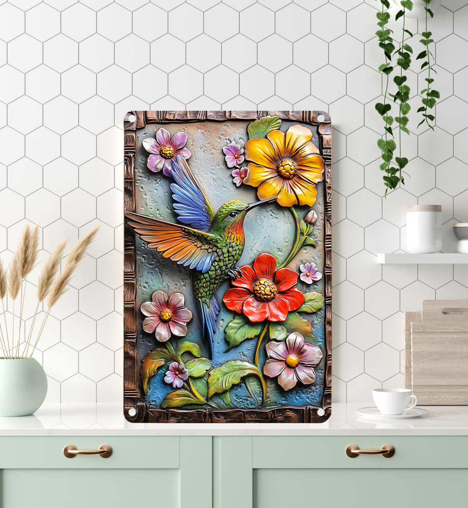 Shineful 2D Metal Sign Vibrant Floral Hummingbird