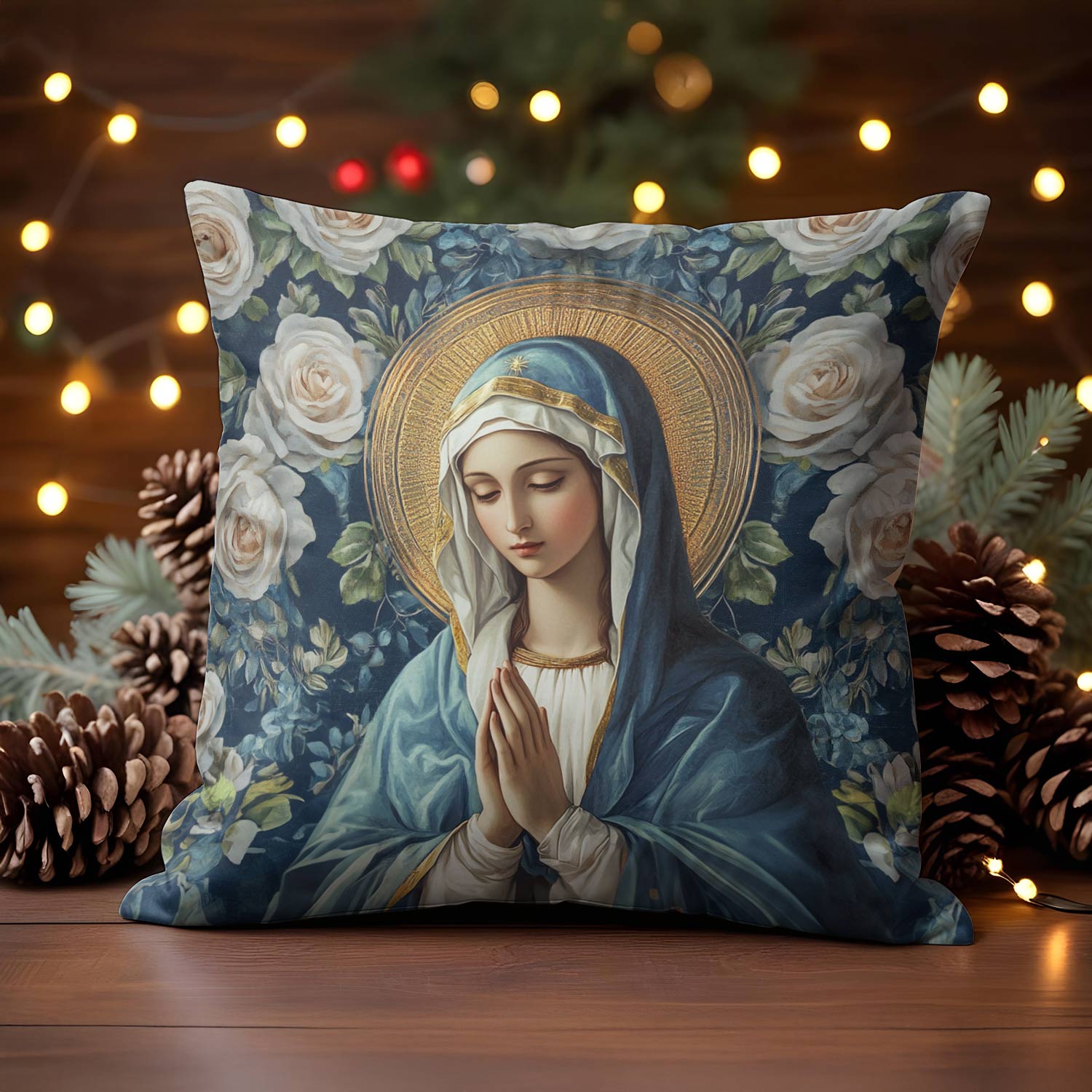 Shineful 2D Print Cushion Cover, Pillowcase, Pillows Covers Virgin Mary Floral Devotion