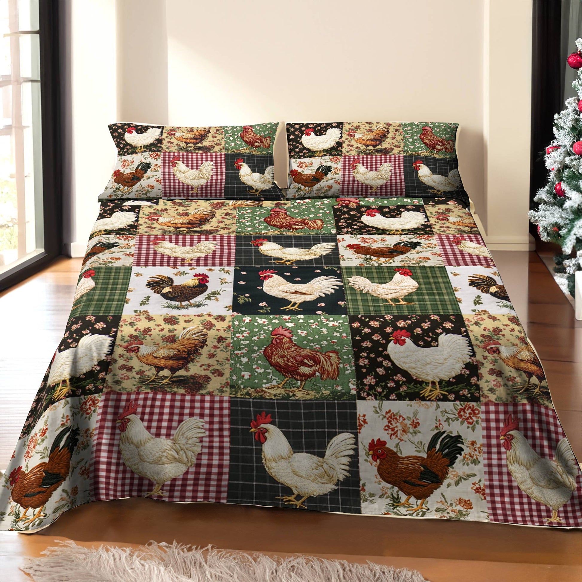 Shineful 4-Piece Bed Sheet Set Charming Floral Chickens