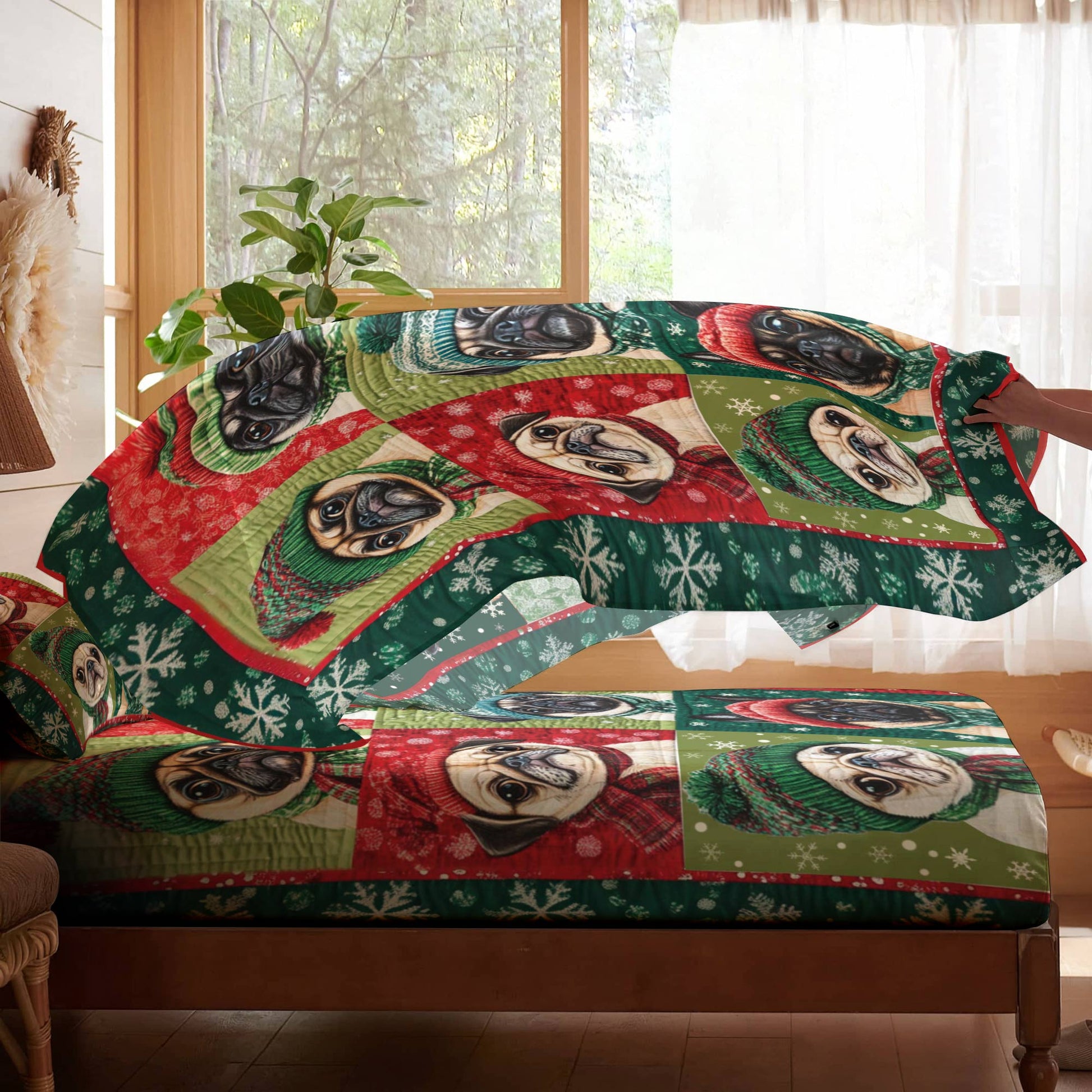 Shineful 4-Piece Bed Sheet Set Festive Puggy Christmas