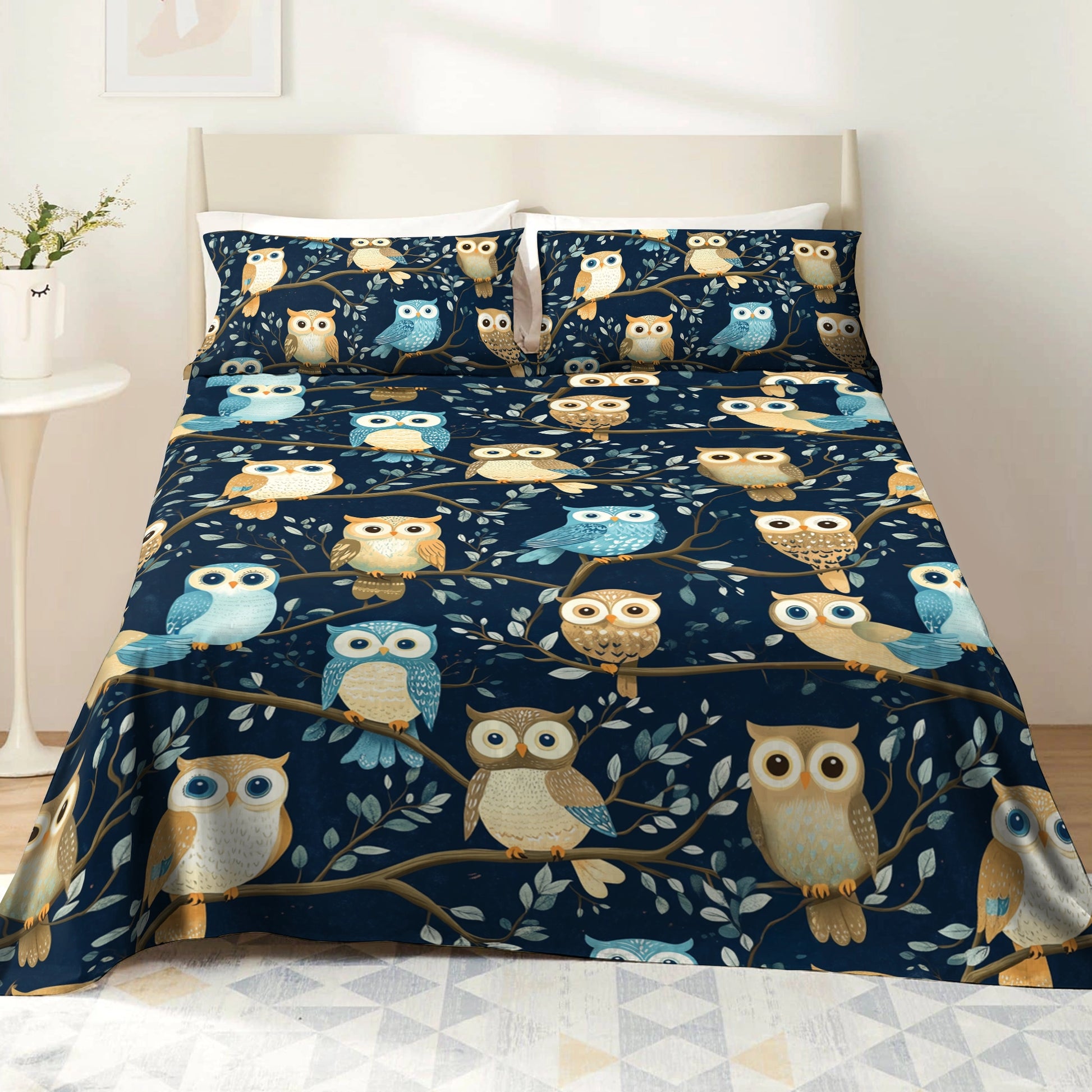 Shineful 4-Piece Bed Sheet Set Owl Wisdom Dream