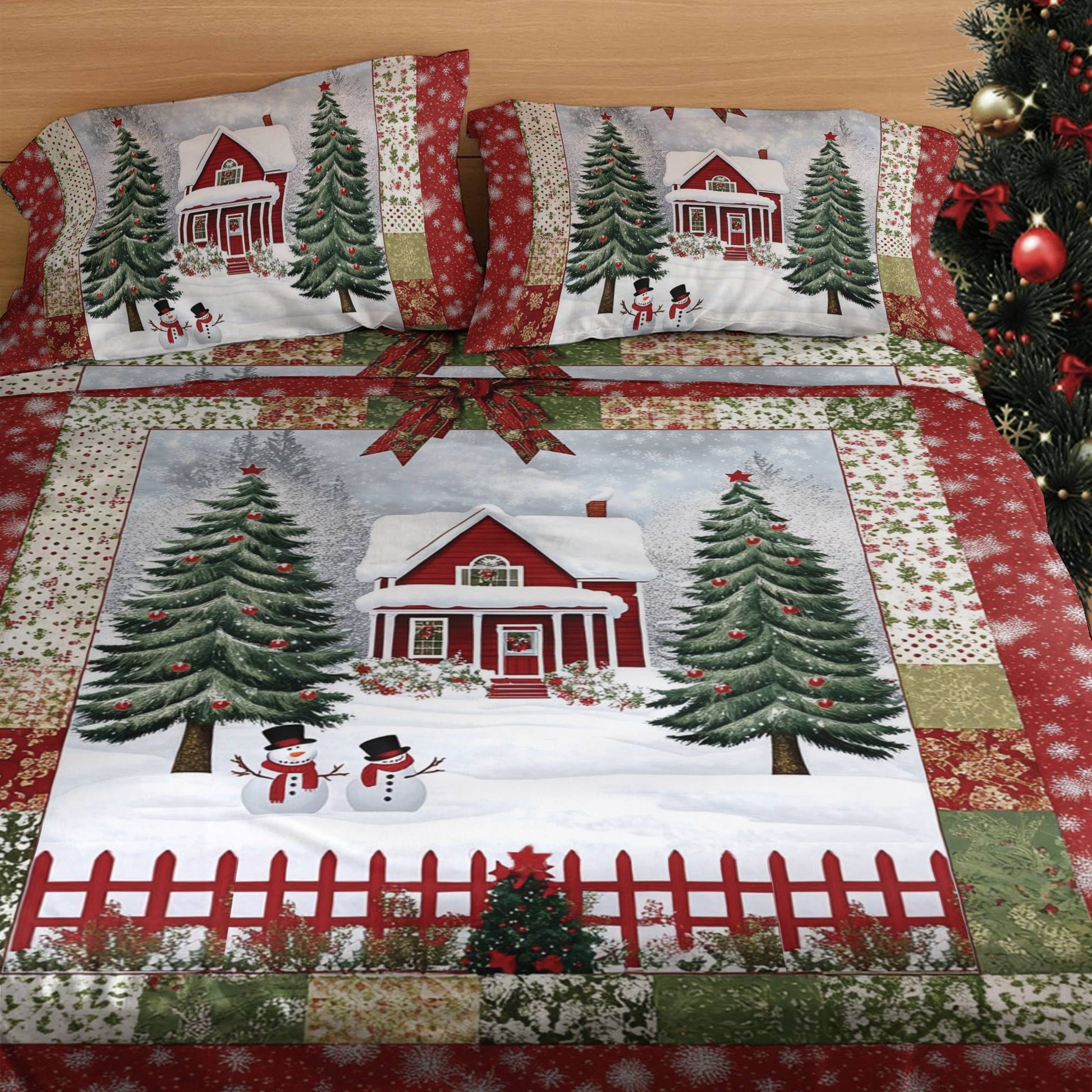 Shineful 4-Piece Bed Sheet Set Snowy Village