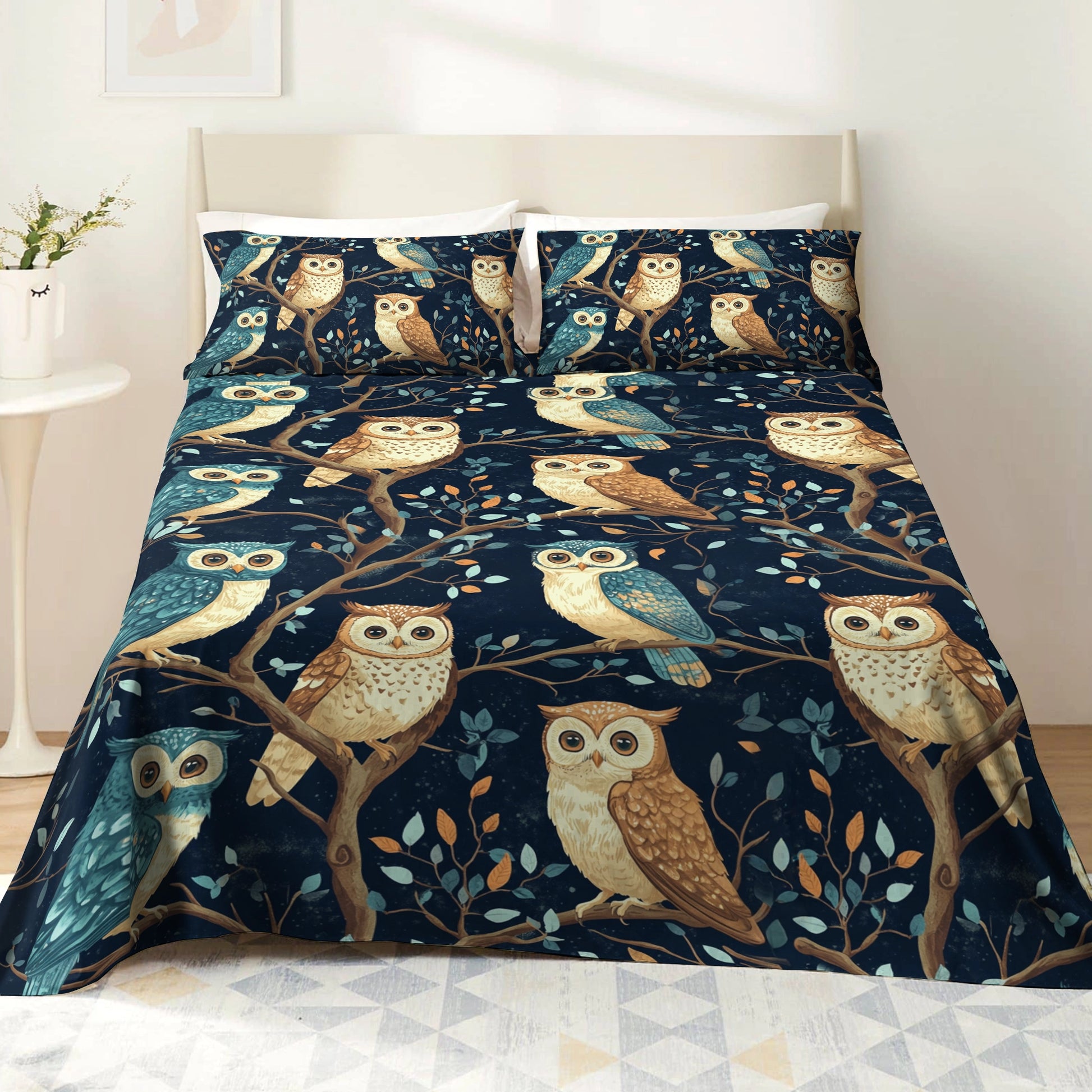Shineful 4-Piece Bed Sheet Set Whimsical Owl Haven