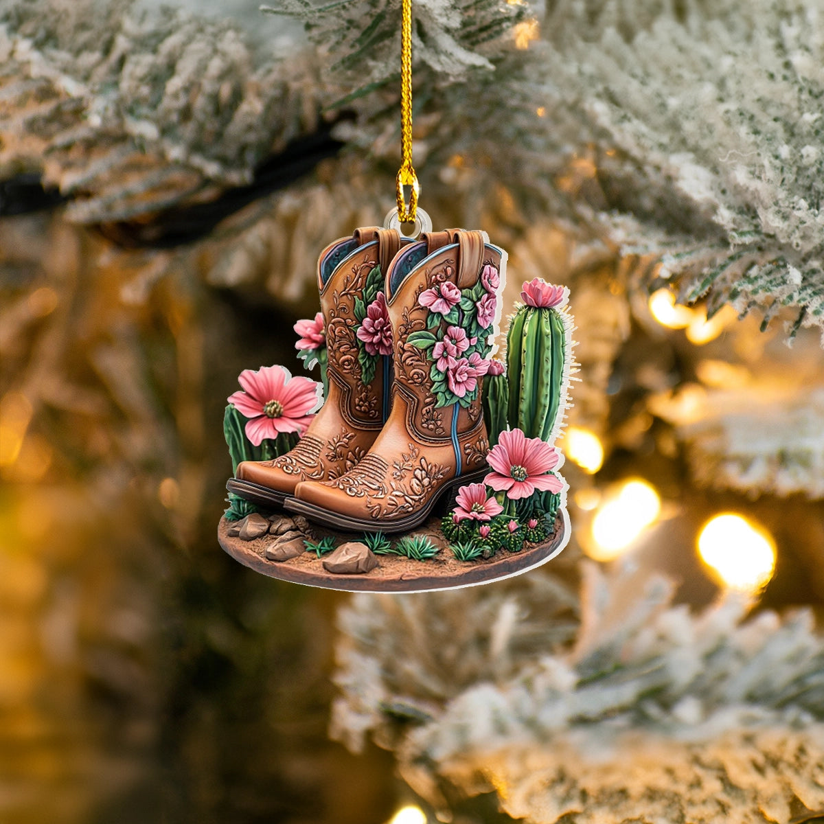 Shineful Acrylic Ornament Blooming Western Charm Cowboy Boot