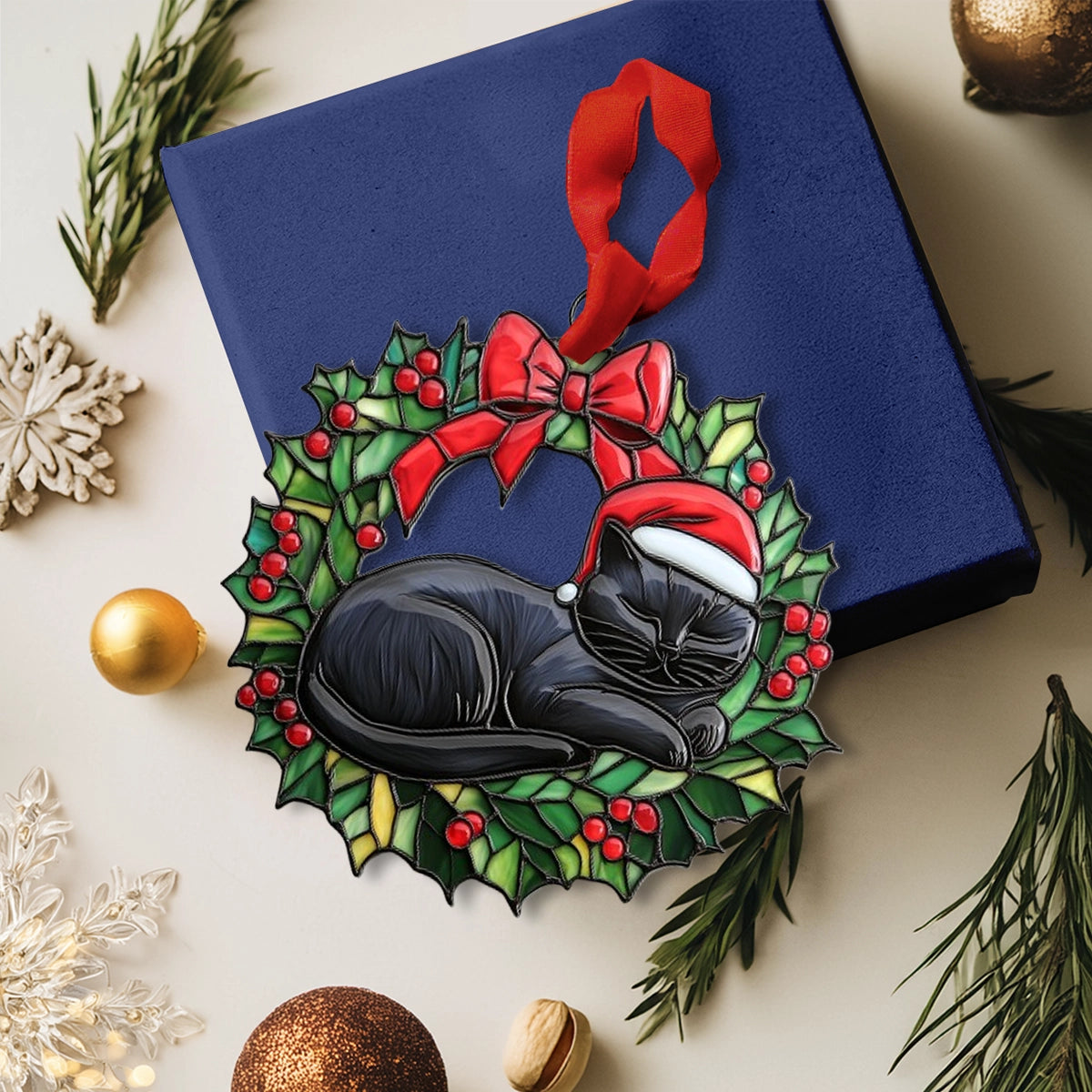 Shineful Acrylic Ornament Holly Jolly Cat Wreath