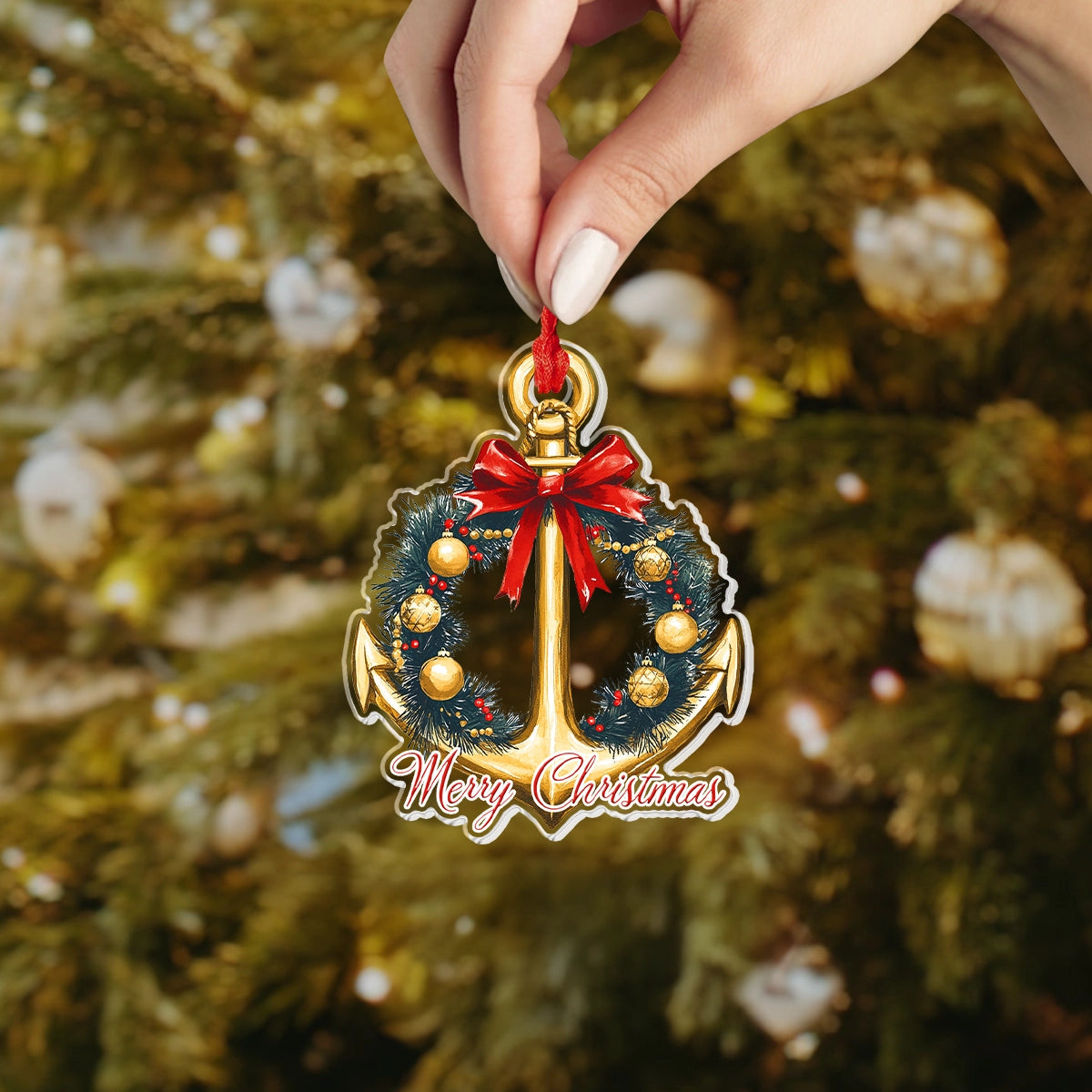 Shineful Acrylic Ornament Sailing Golden Anchor Christmas
