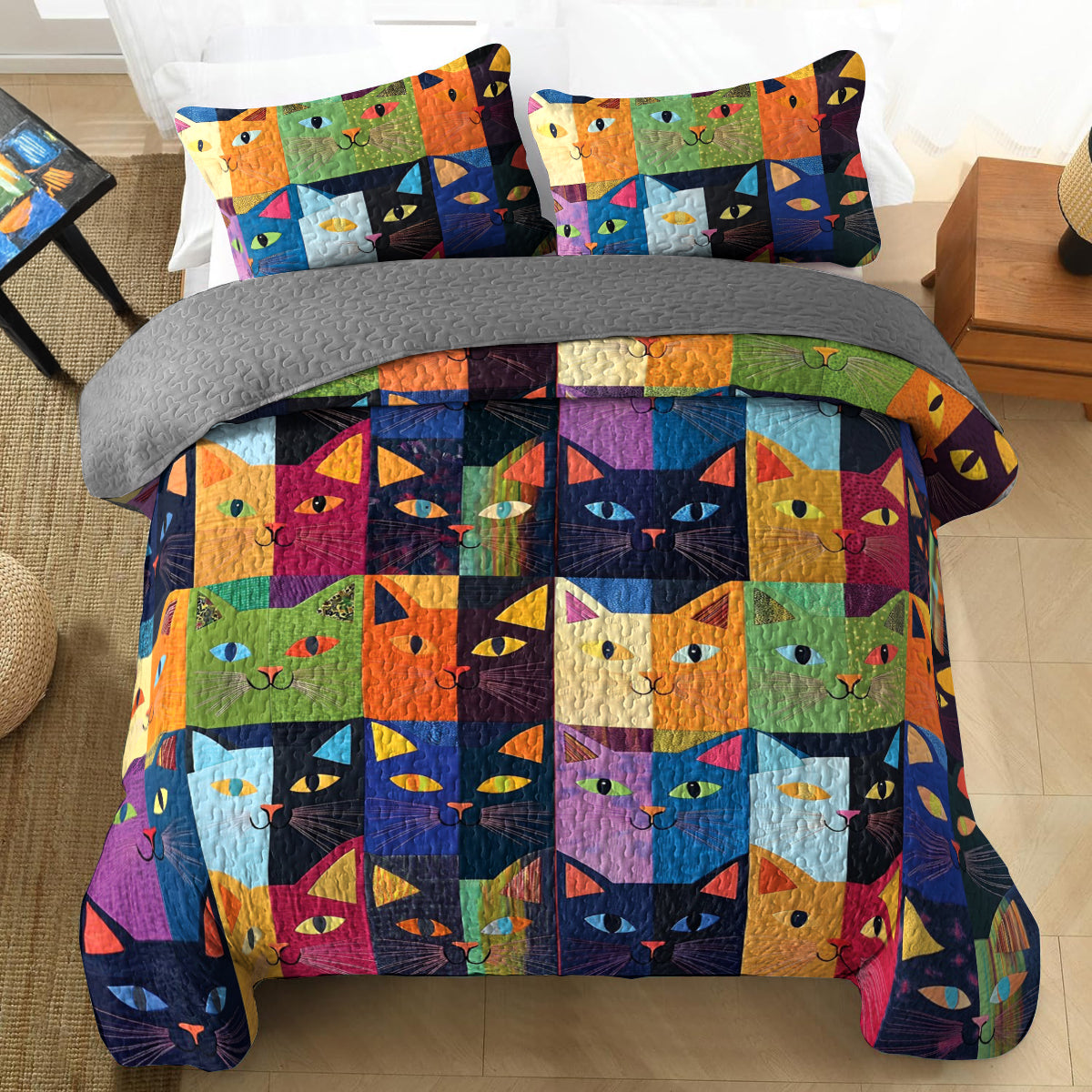 Shineful All Season Quilt 3-Piece Set Artistic Cats