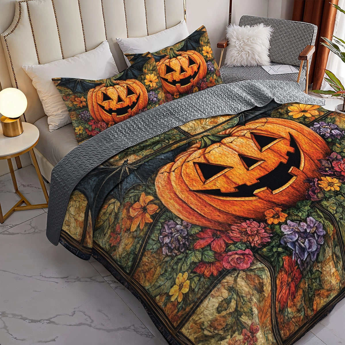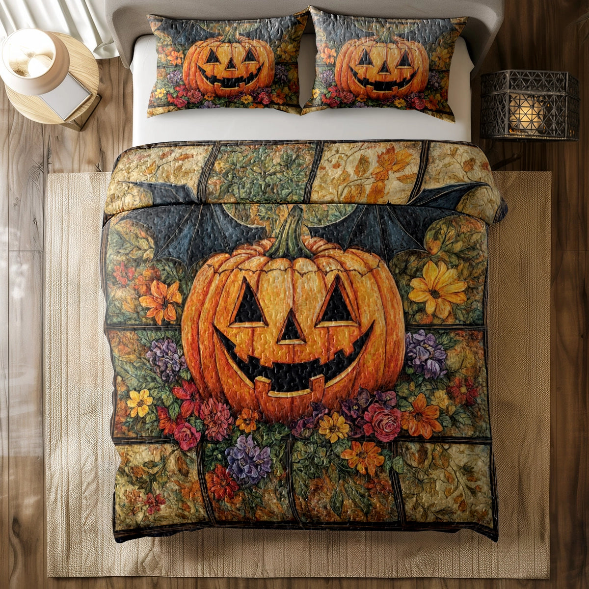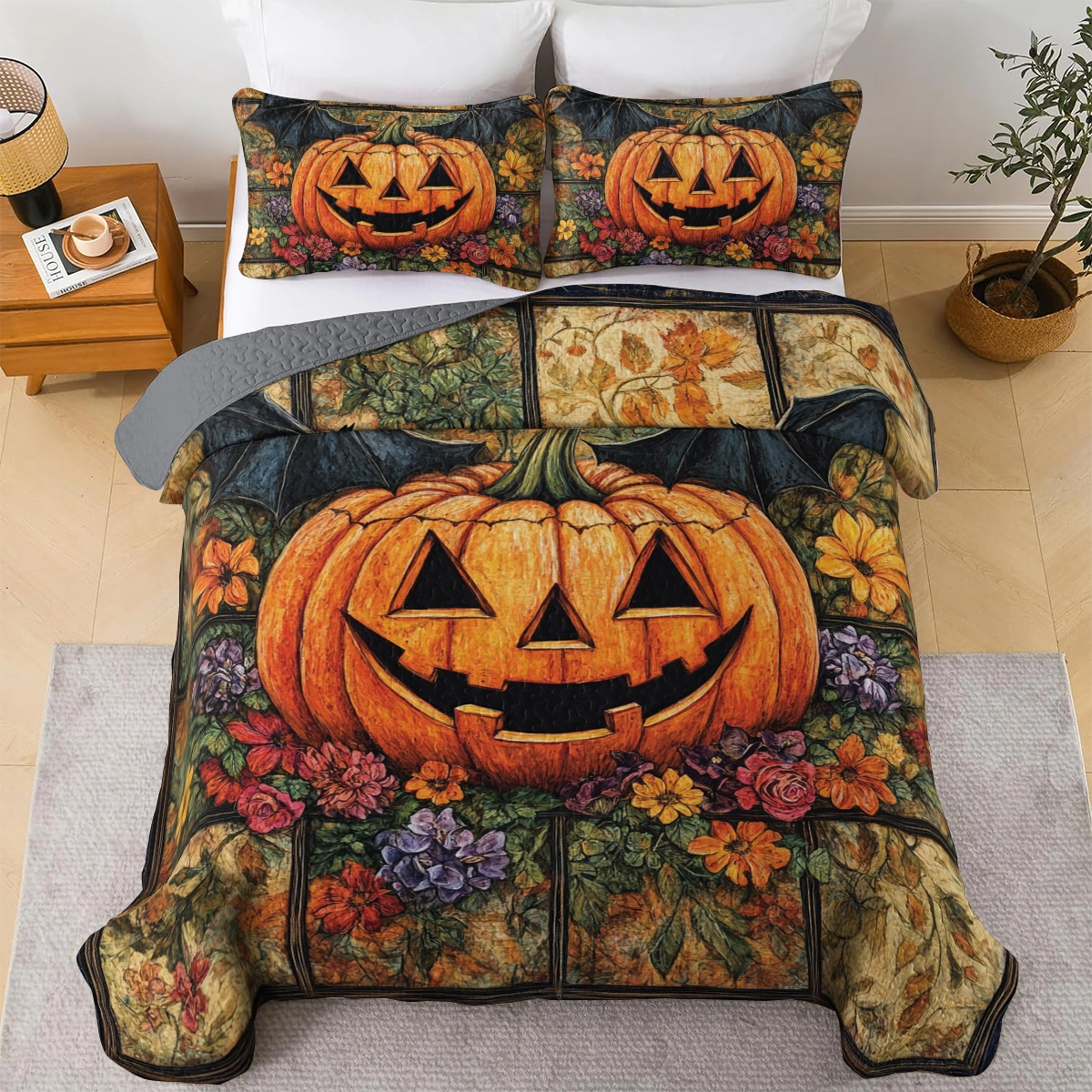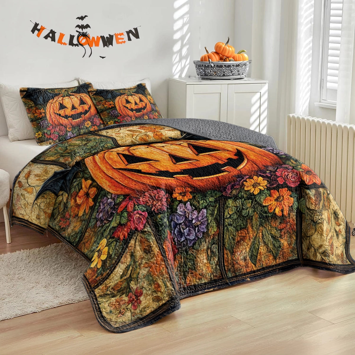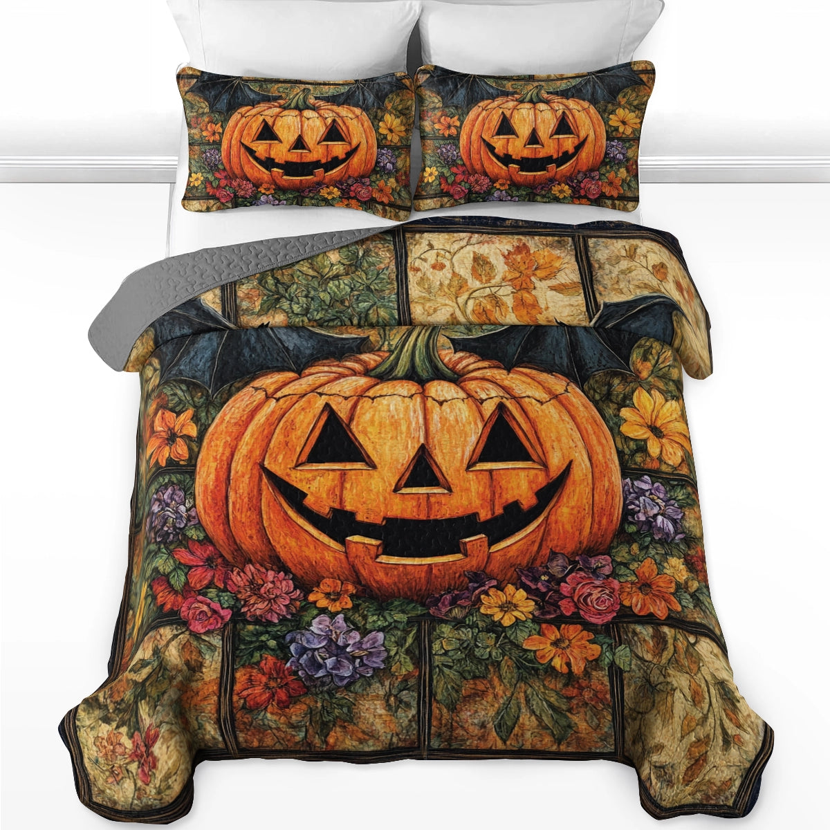 Shineful All Season Quilt 3-Piece Set - Autumn Harvest Jack-O'-Lantern