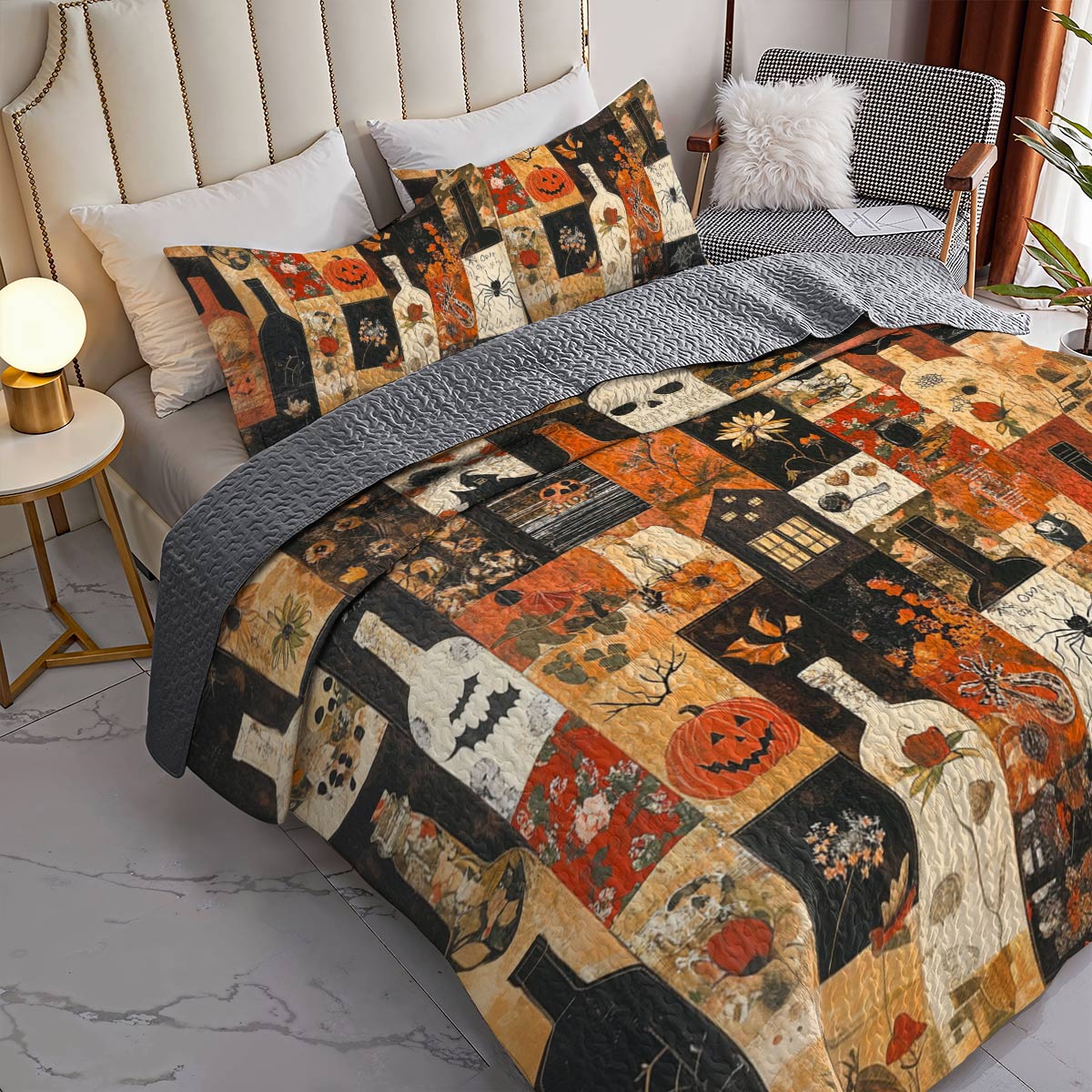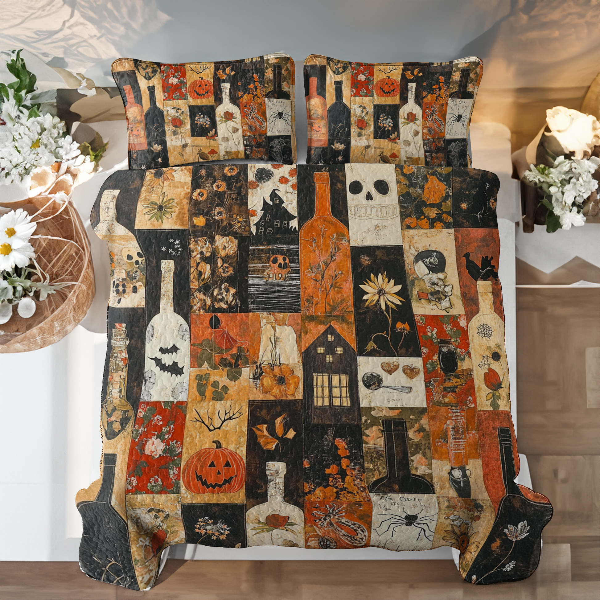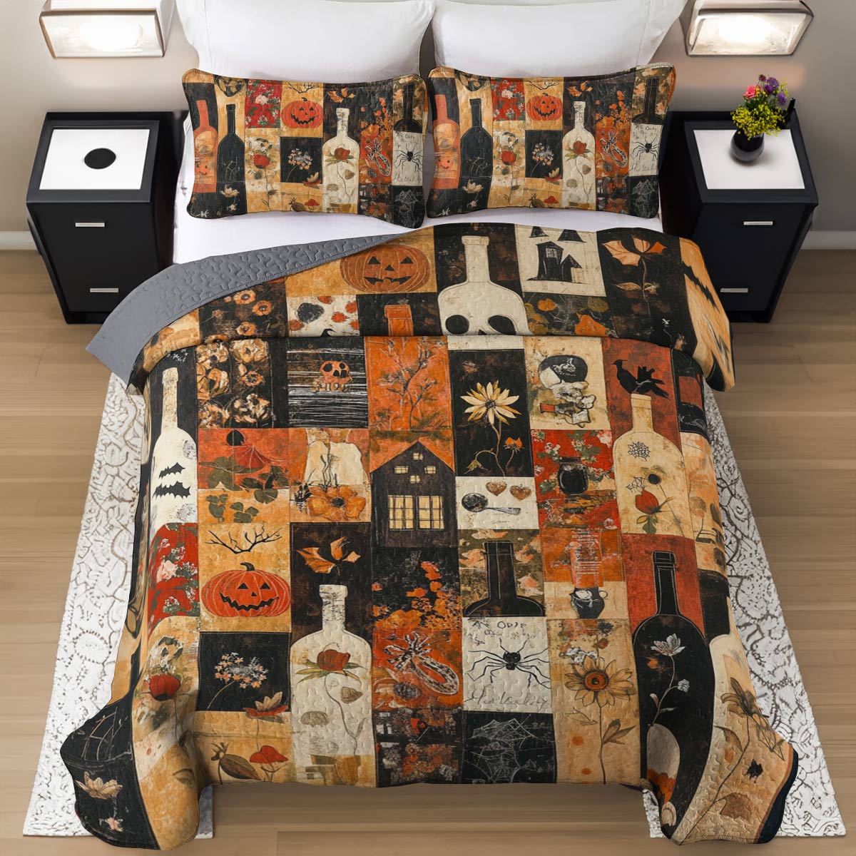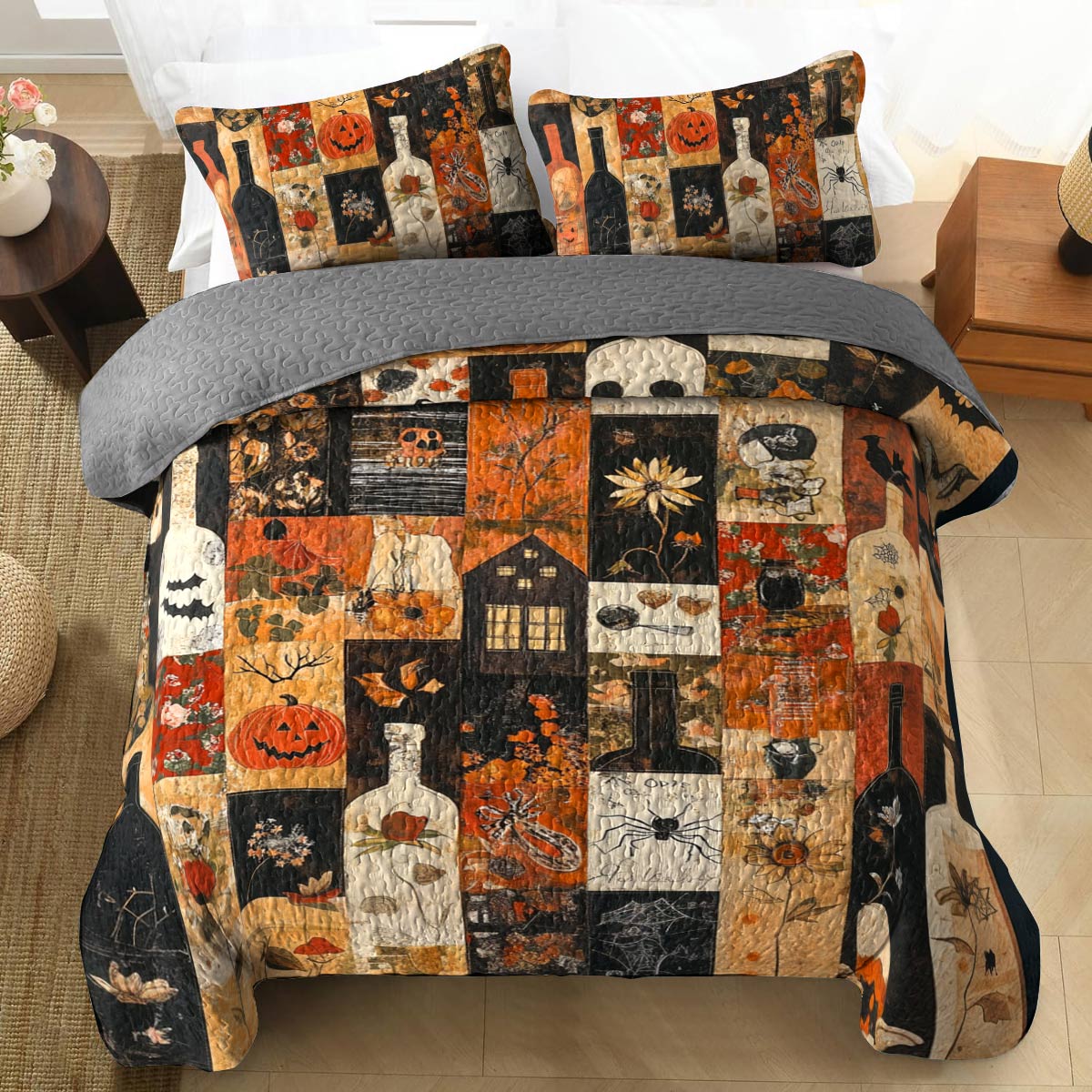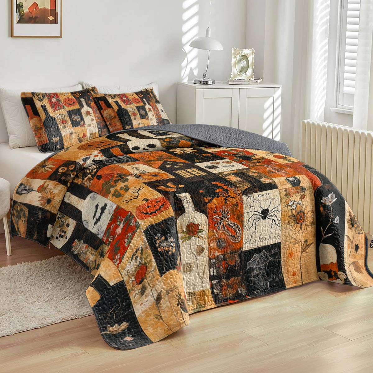 Shineful All Season Quilt 3-Piece Set Beautiful Halloween Wine
