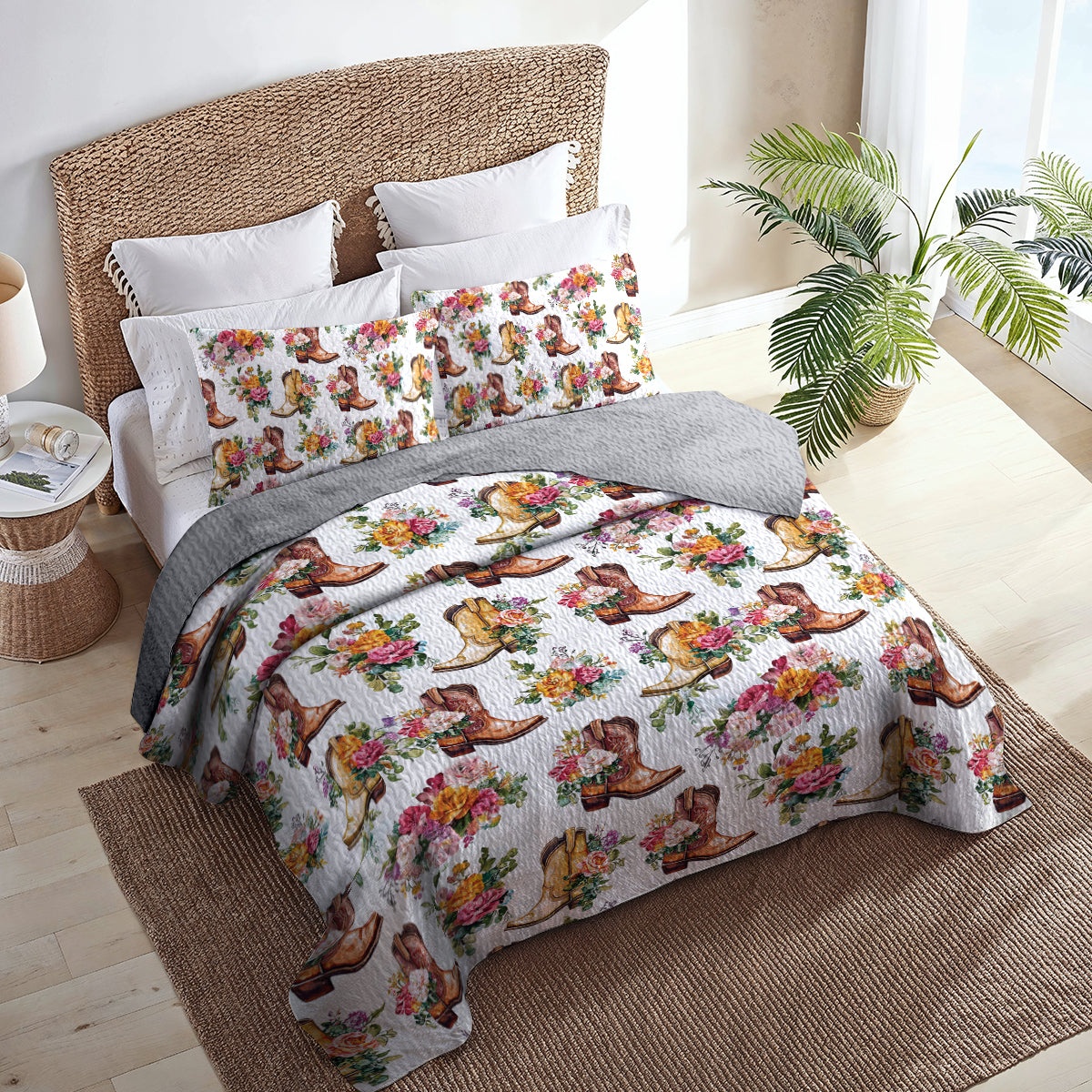 Shineful All Season Quilt 3-Piece Set Blooming Wildflower Cowboy Boots