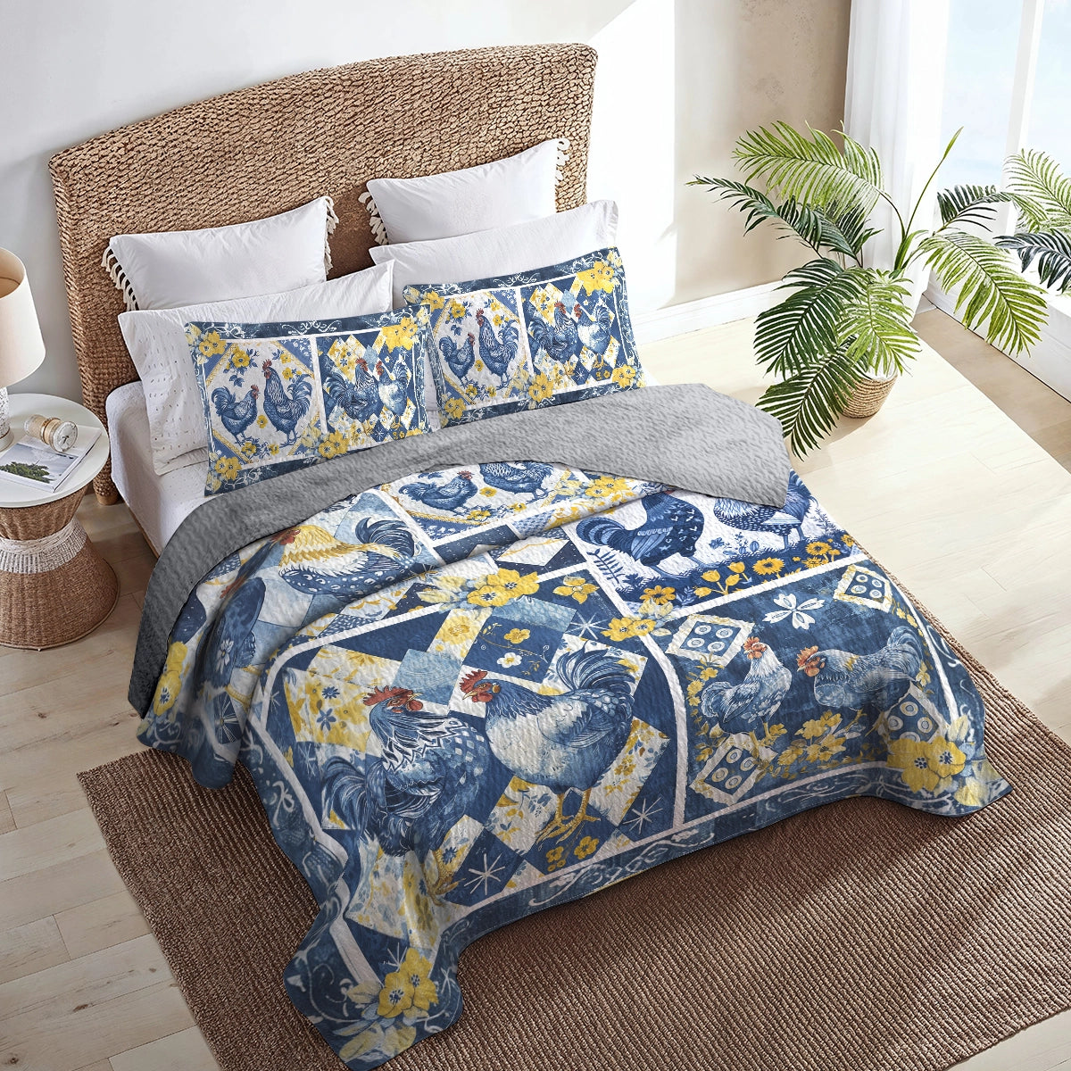 Shineful All Season Quilt 3-Piece Set Blue Rooster