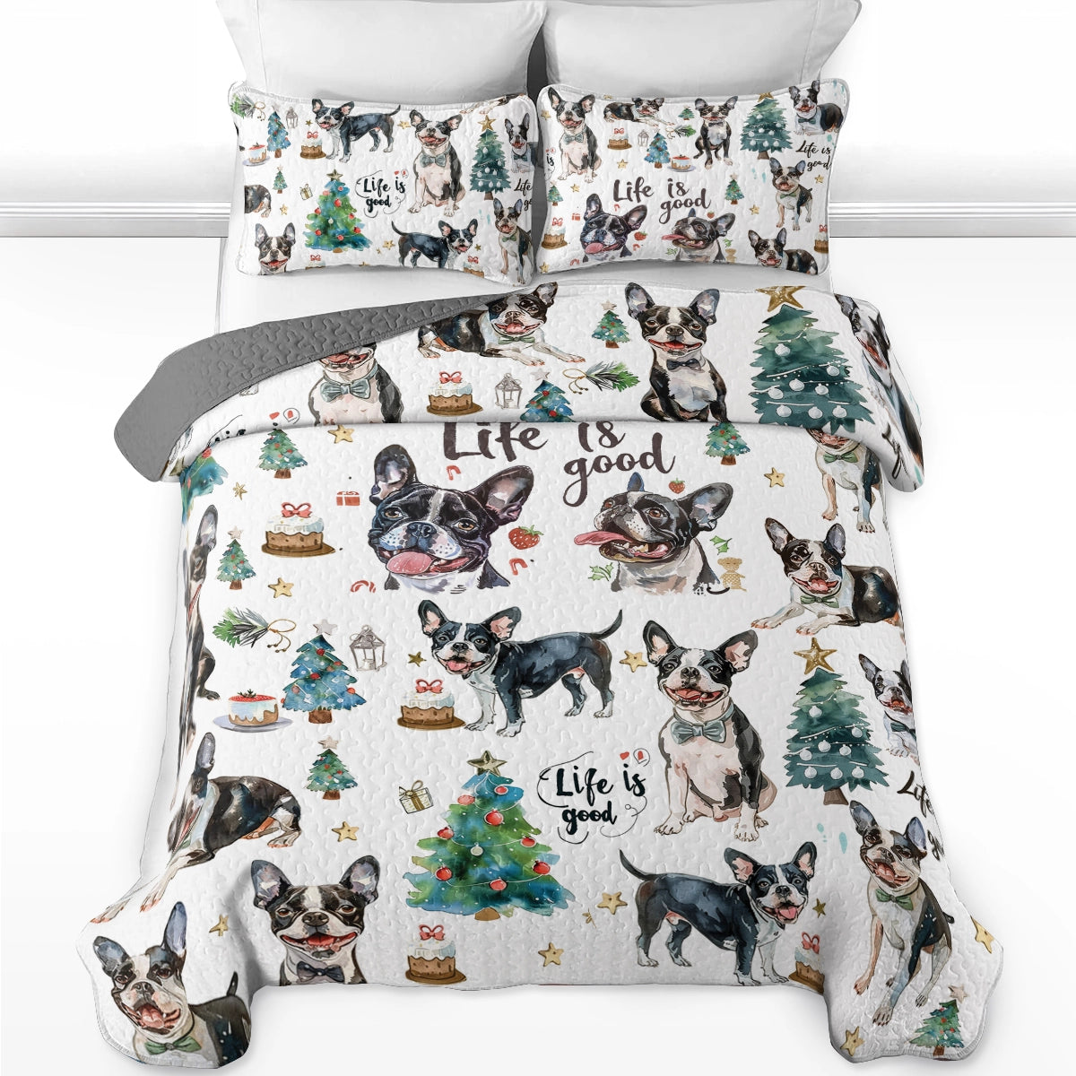 Shineful All Season Quilt 3-Piece Set Boston Terriers Holiday Hound