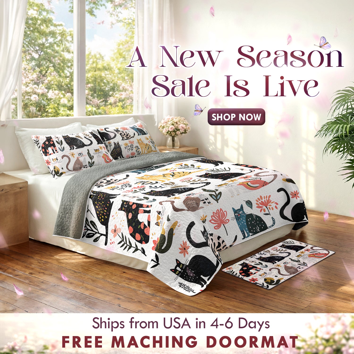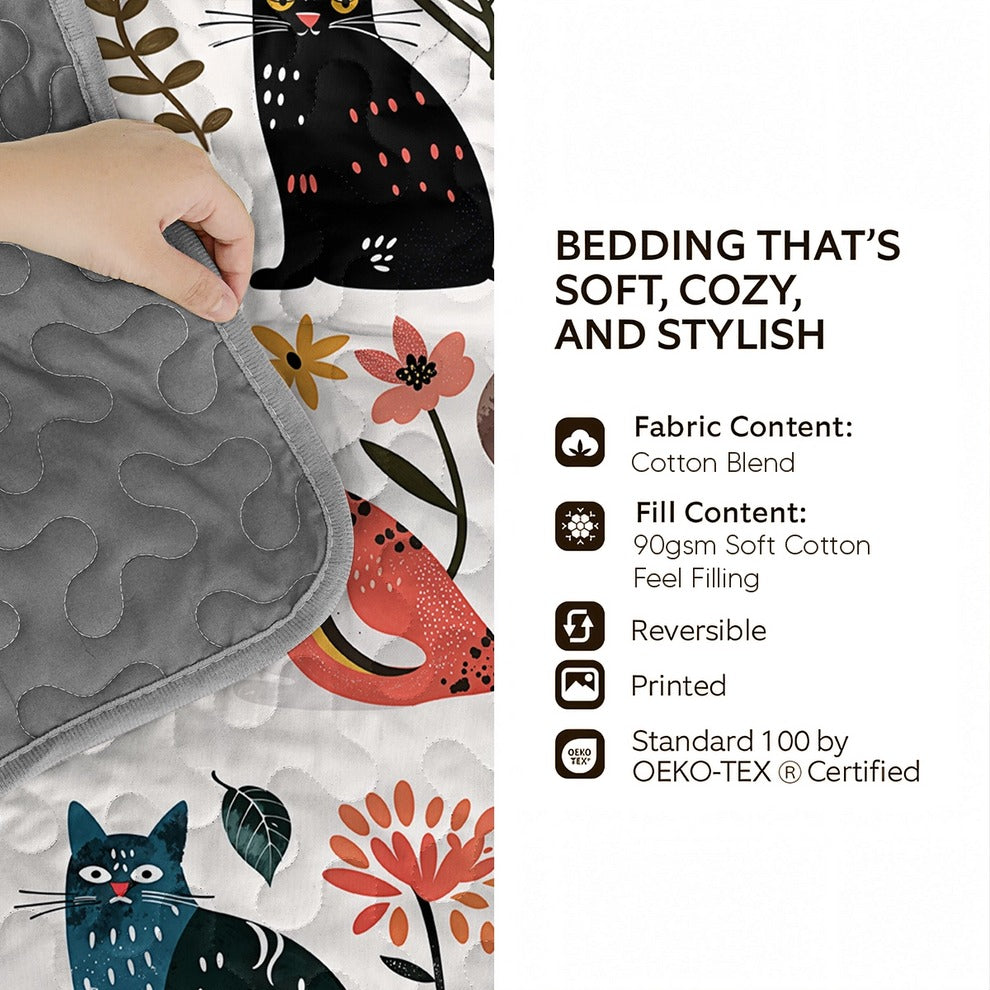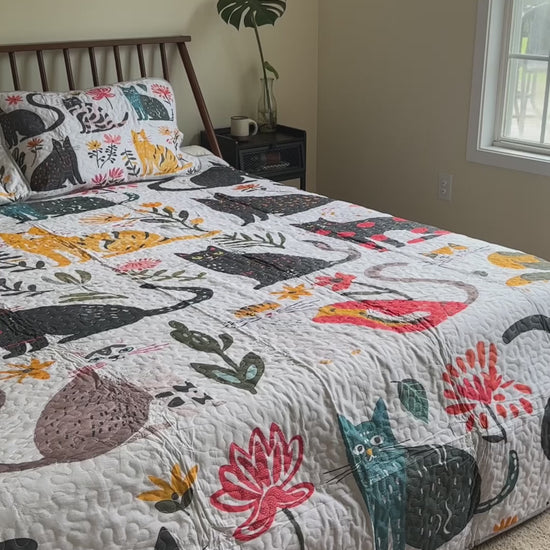 Shineful All Season Quilt 3-Piece Set Botanical Cat Bliss