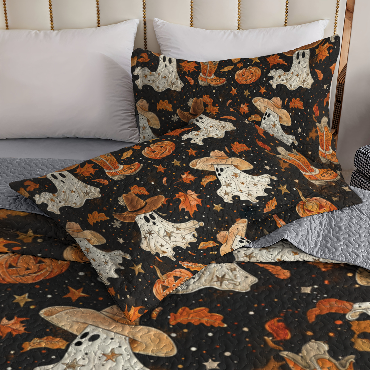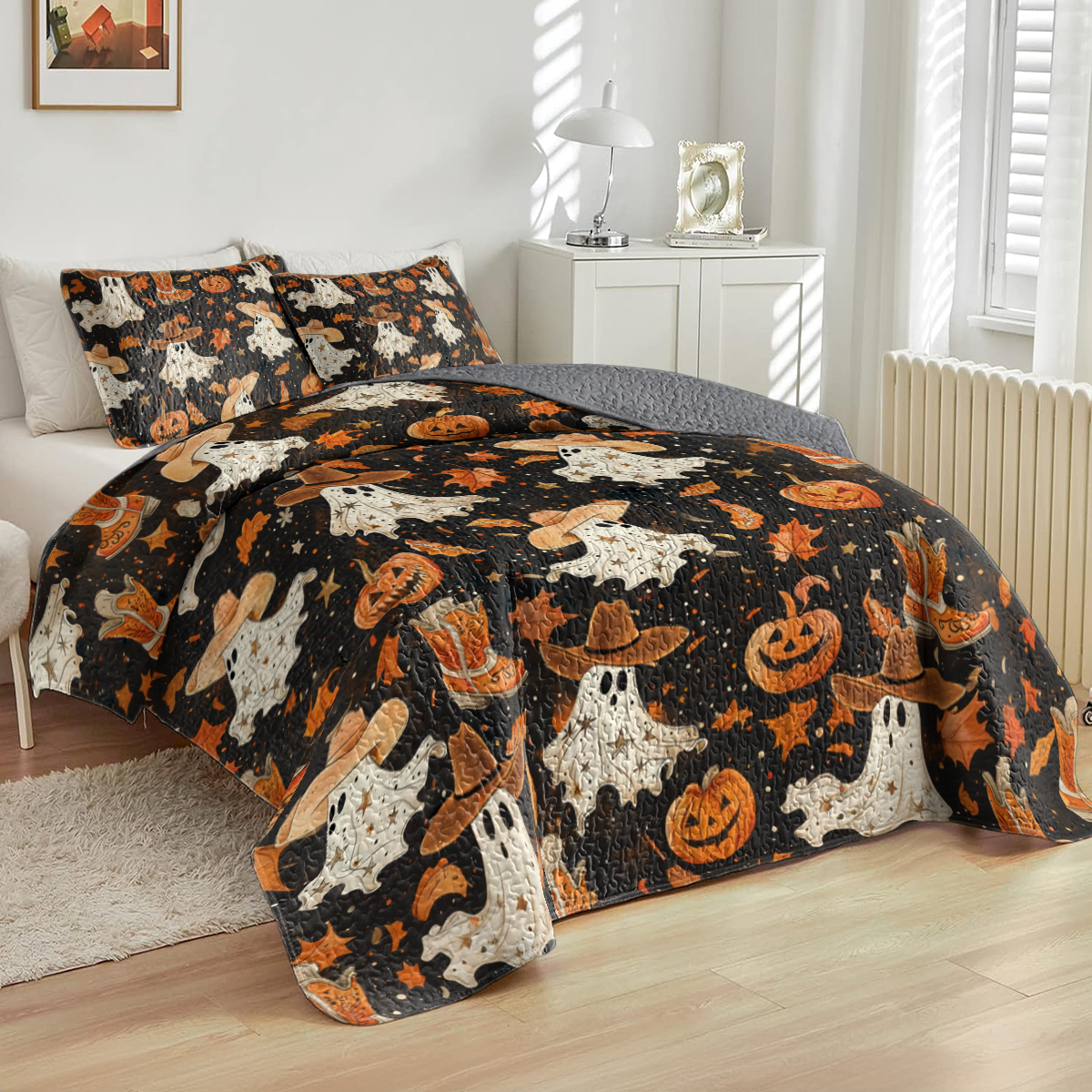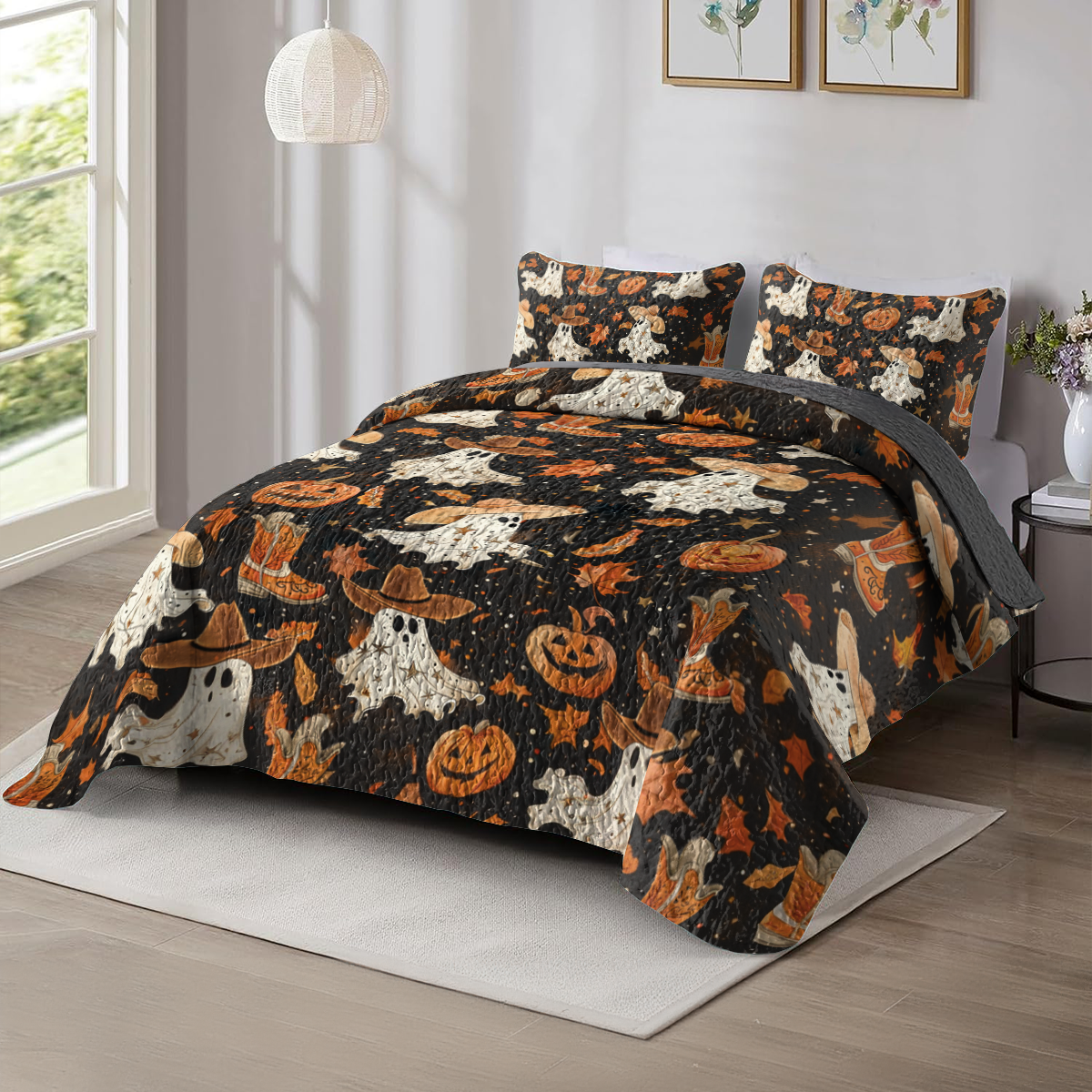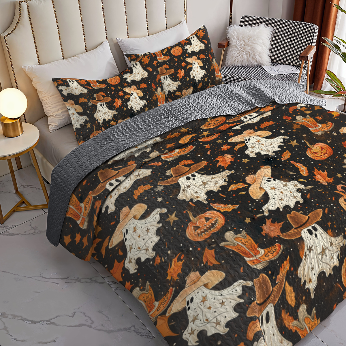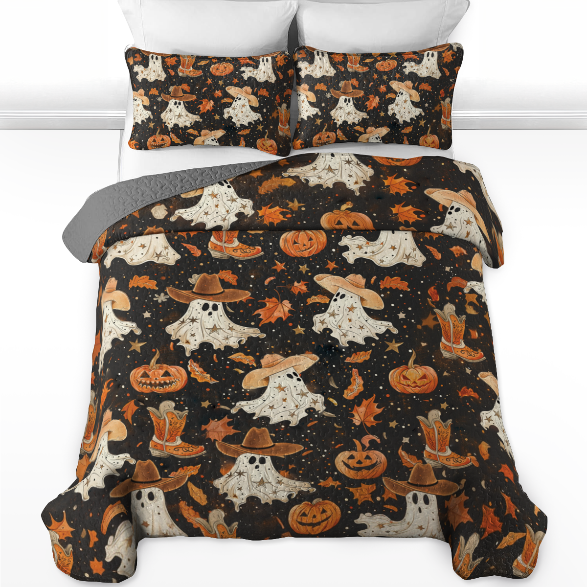 Shineful All Season Quilt 3-Piece Set Brown Ghostly Cowboy