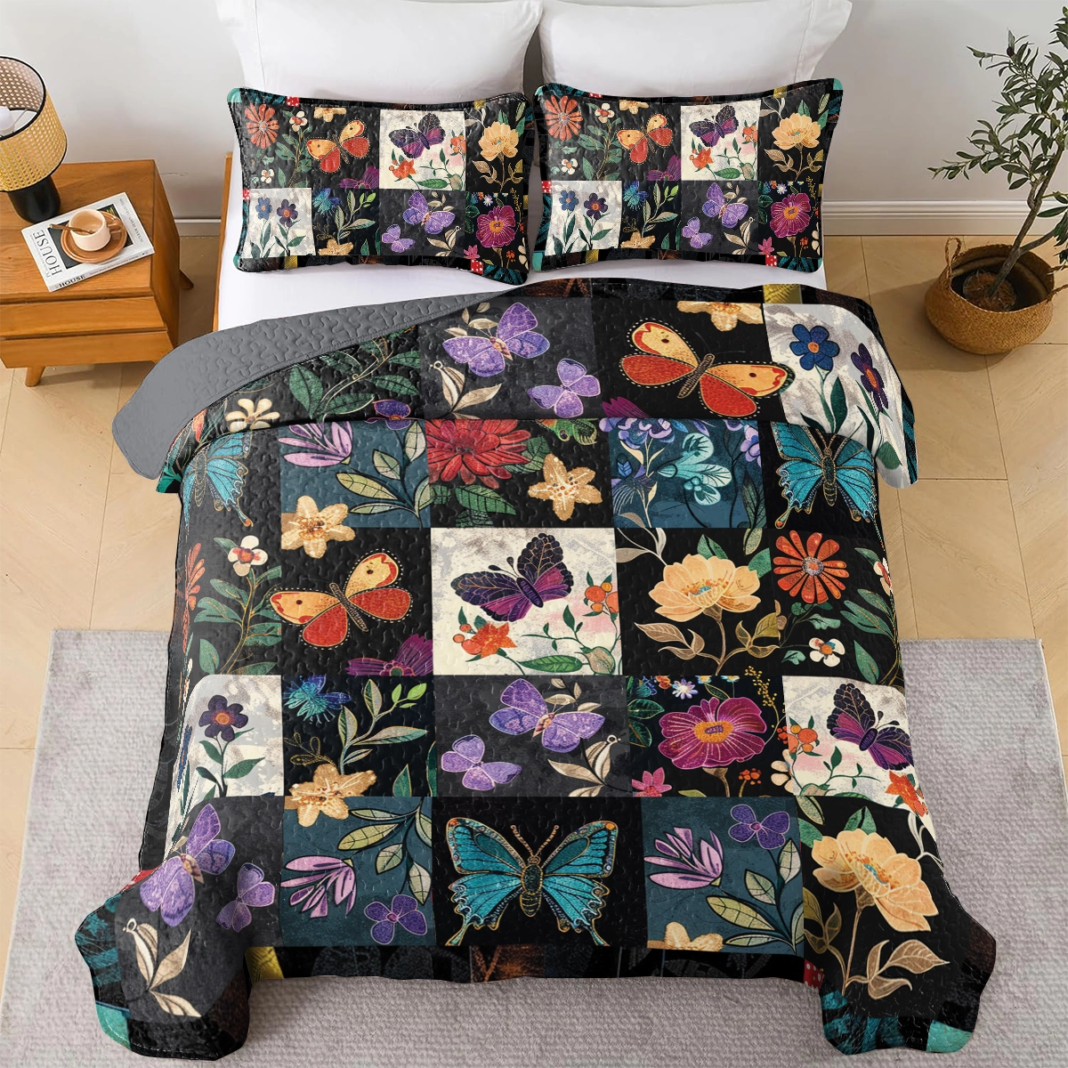 Shineful All Season Quilt 3-Piece Set Butterfly Blooms