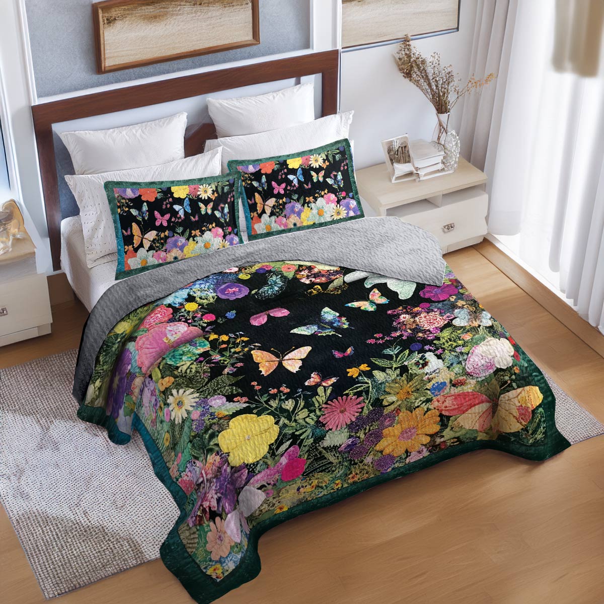 Transform your bedroom into a serene sanctuary with The Shineful Quilt Set. The rich, vibrant colors and unique artworks breathe new life into your space, while adding a touch of personality and timeless elegance. Crafted with attention to detail, each piece invites you to relax in style. This quilt set is more than just bedding—it’s a statement of comfort and sophistication. Let it elevate your bedroom and enhance every moment of rest