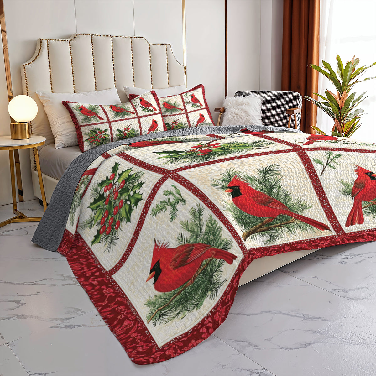 Shineful All Season Quilt 3-Piece Set Cardinal Christmas