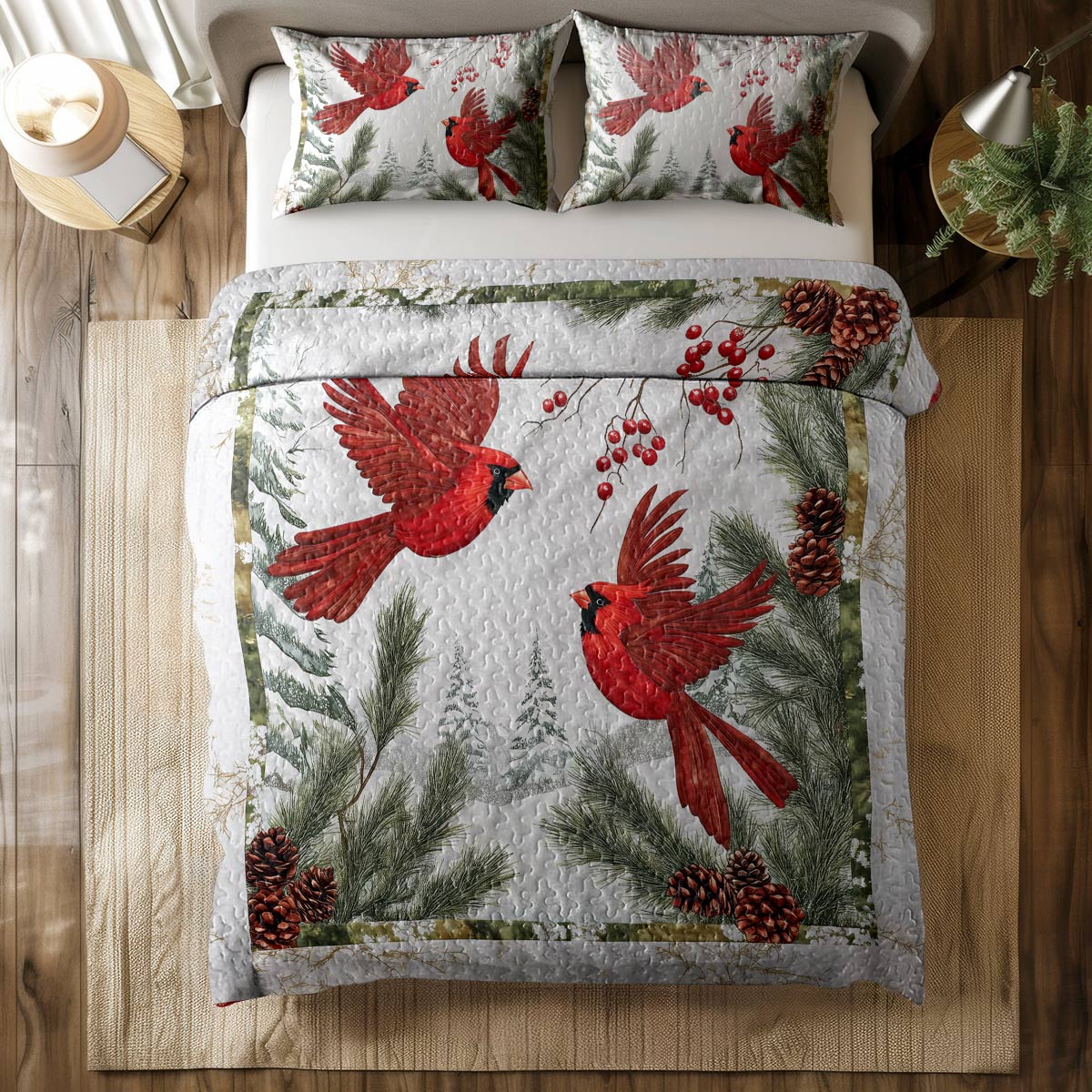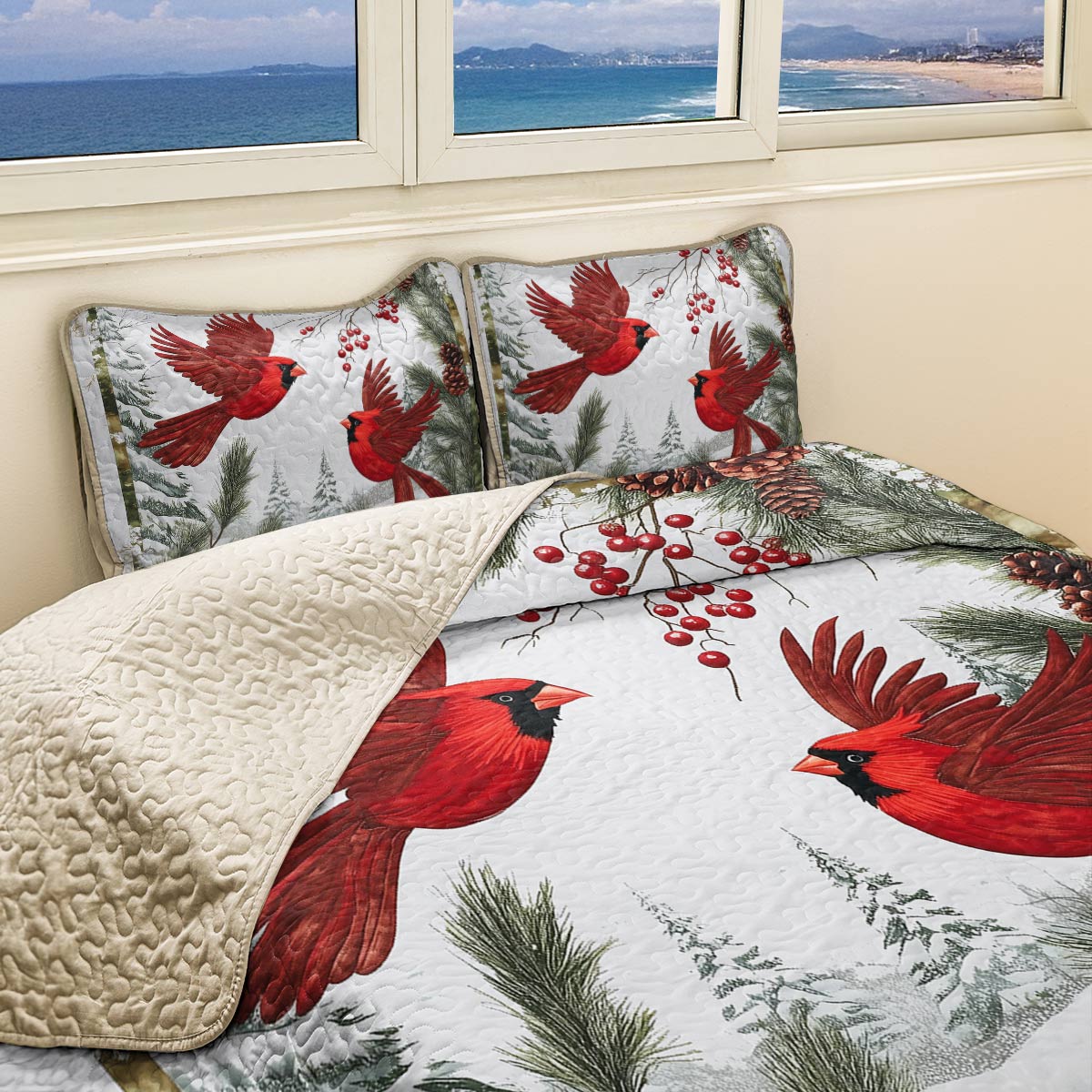 Shineful All Season Quilt 3-Piece Set - Cardinal Winter's Embrace