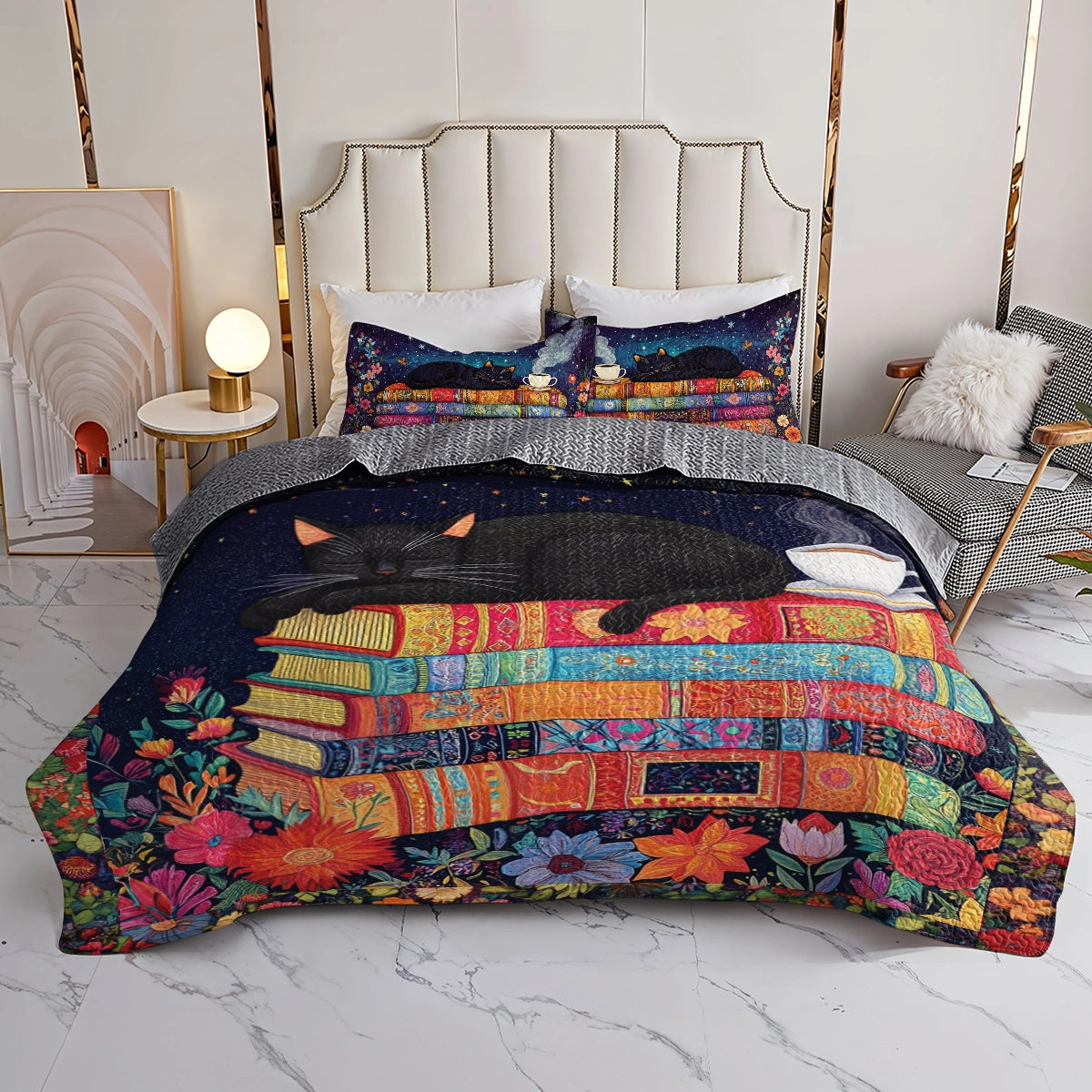 Transform your bedroom into a serene sanctuary with The Shineful Quilt Set. The rich, vibrant colors and unique artworks breathe new life into your space, while adding a touch of personality and timeless elegance. Crafted with attention to detail, each piece invites you to relax in style. This quilt set is more than just bedding—it’s a statement of comfort and sophistication. Let it elevate your bedroom and enhance every moment of rest