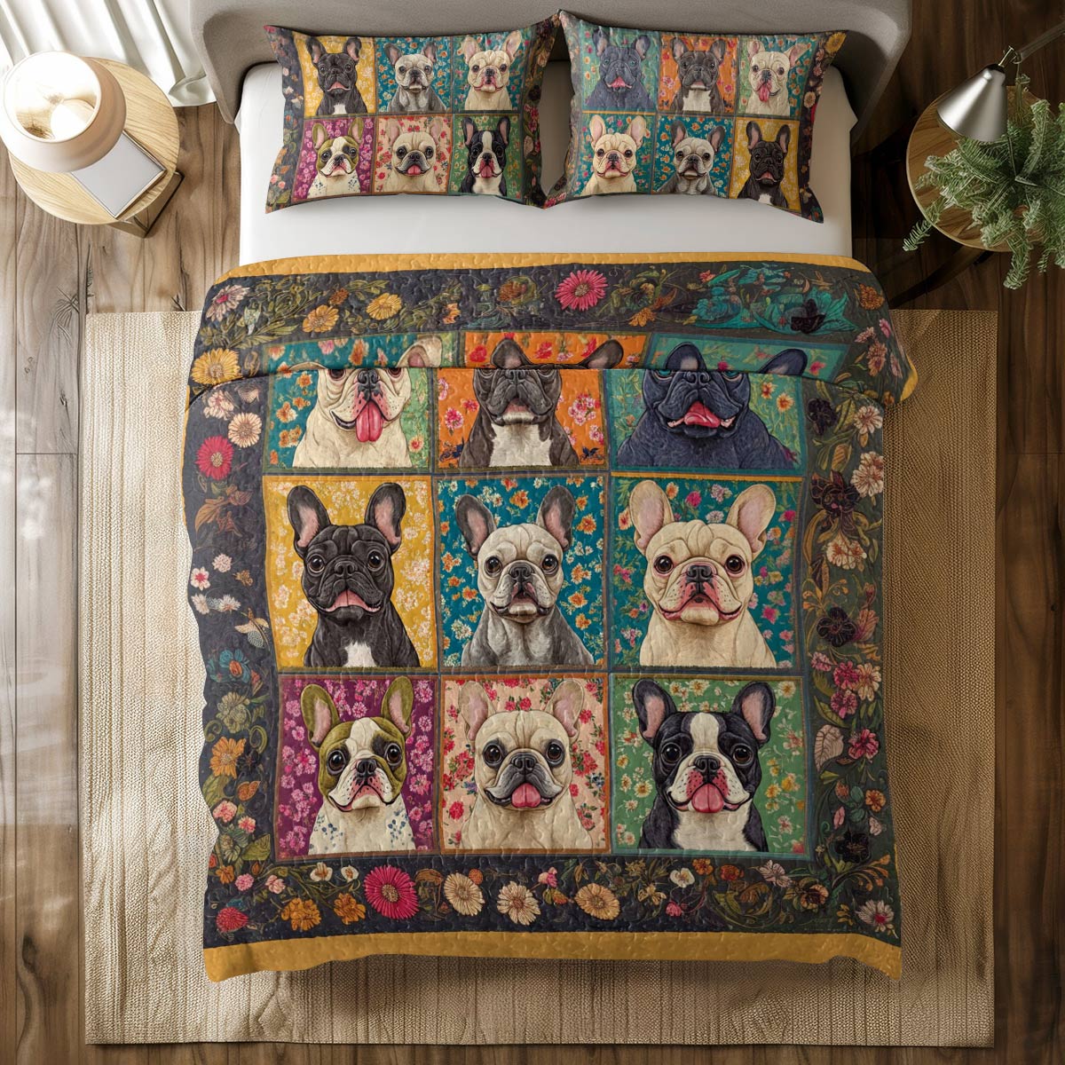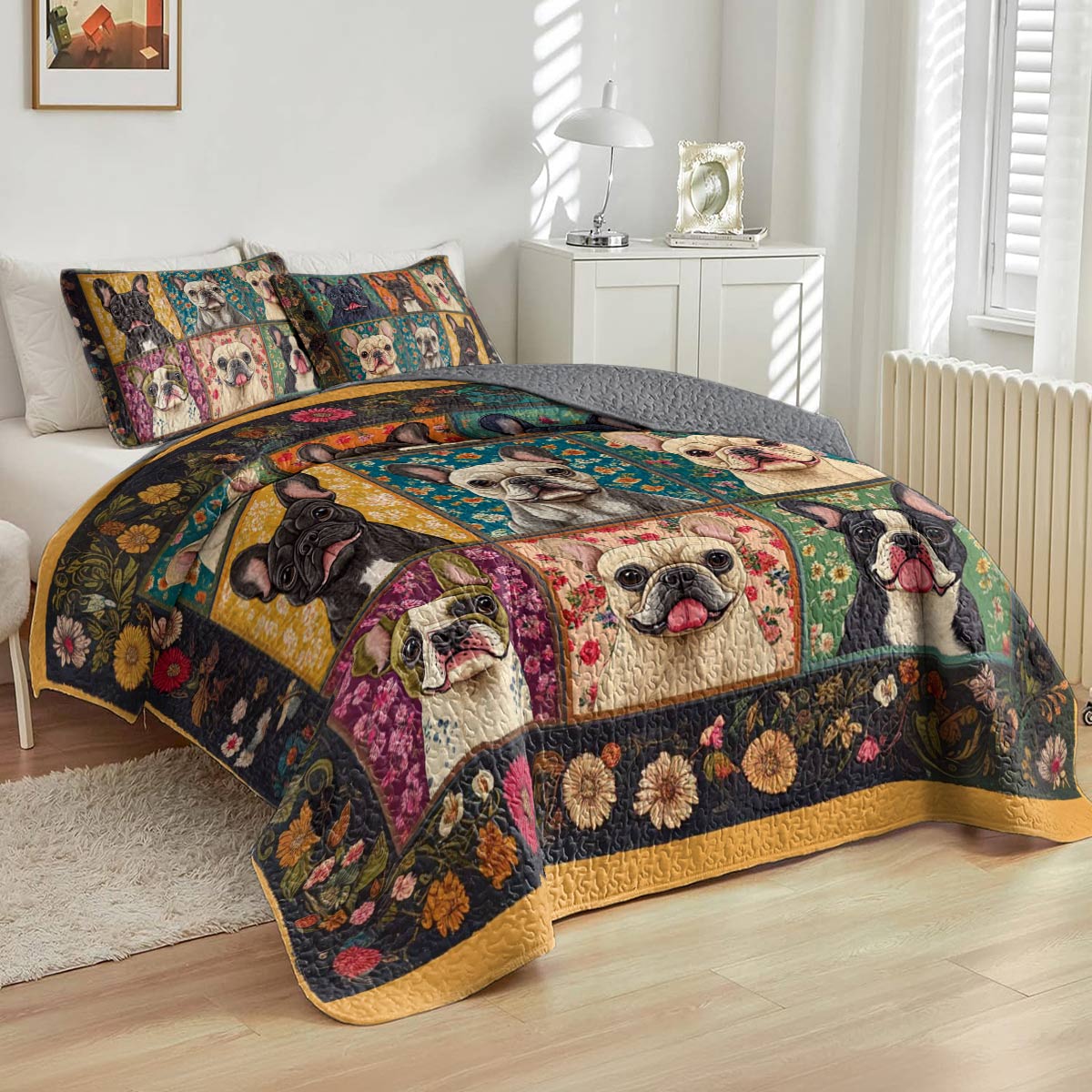 Shineful All Season Quilt 3-Piece Set Charming Bulldogs