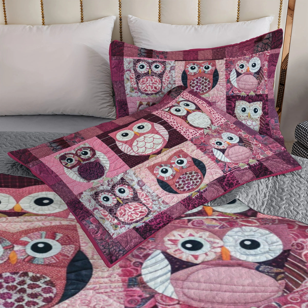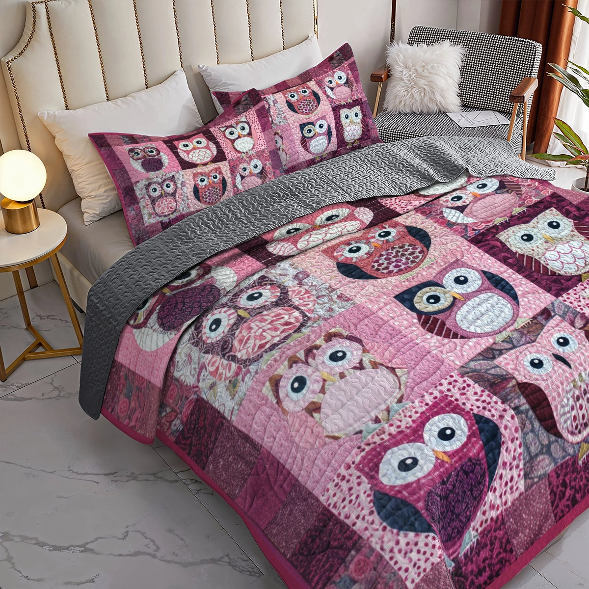 Shineful All Season Quilt 3-Piece Set Charming Pink Owl
