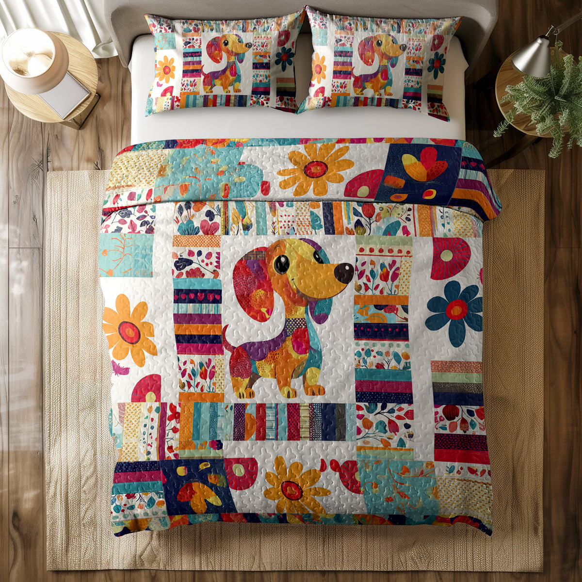Shineful All Season Quilt 3-Piece Set Cheerful Dachshund
