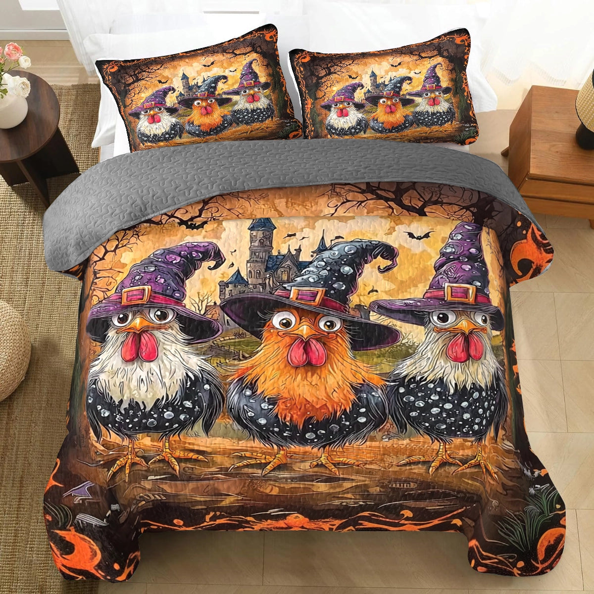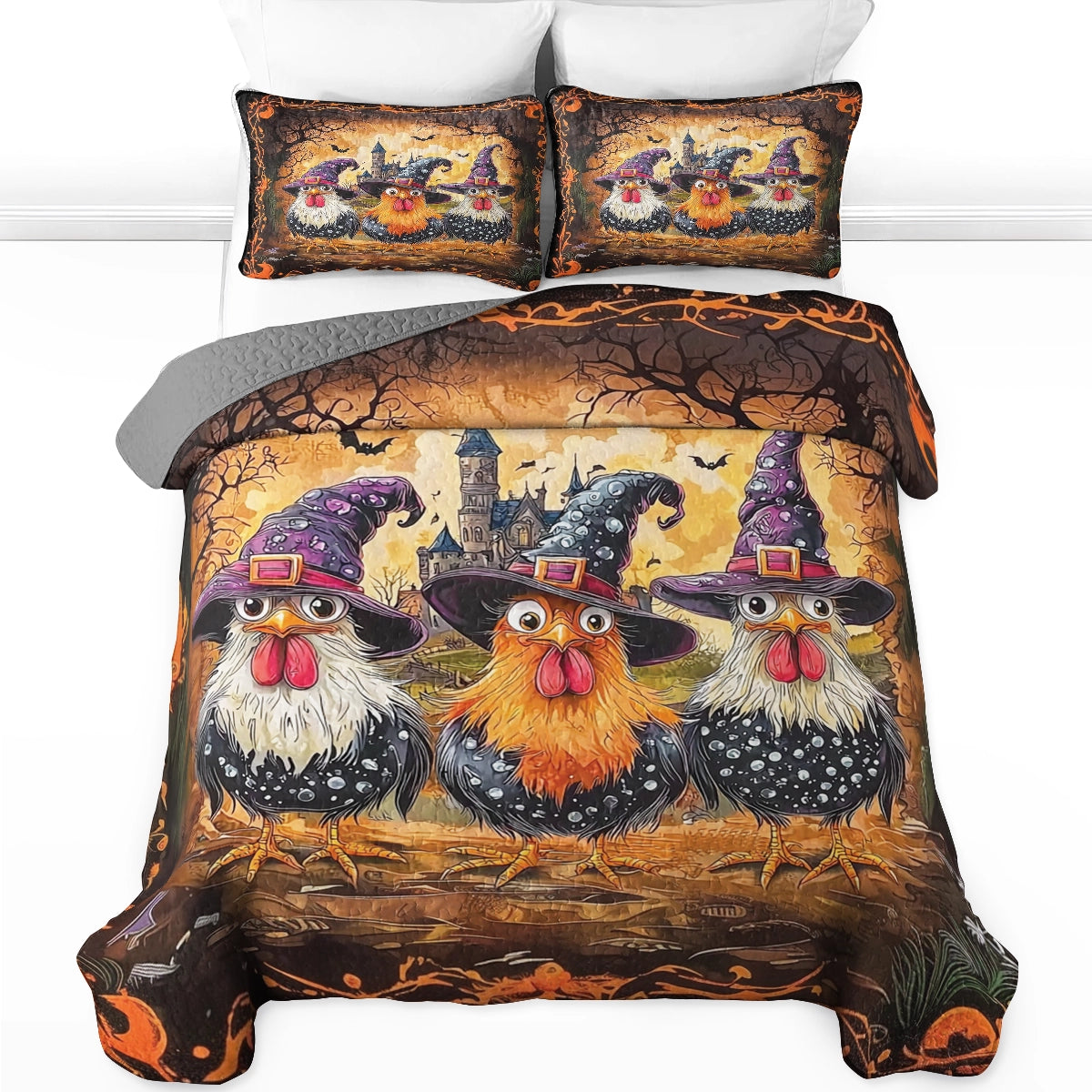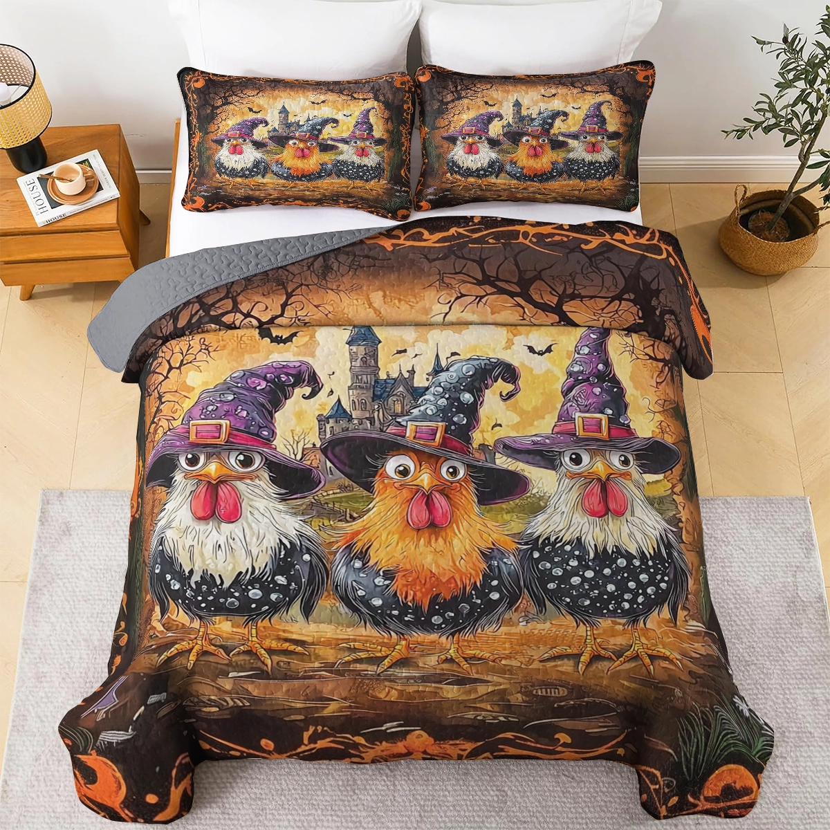 Shineful All Season Quilt 3-Piece Set - Chicken Spooky Hat Witch